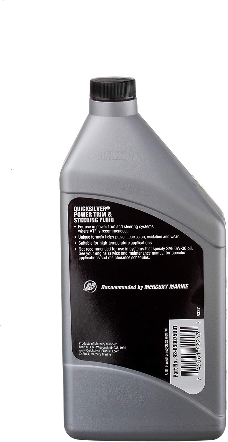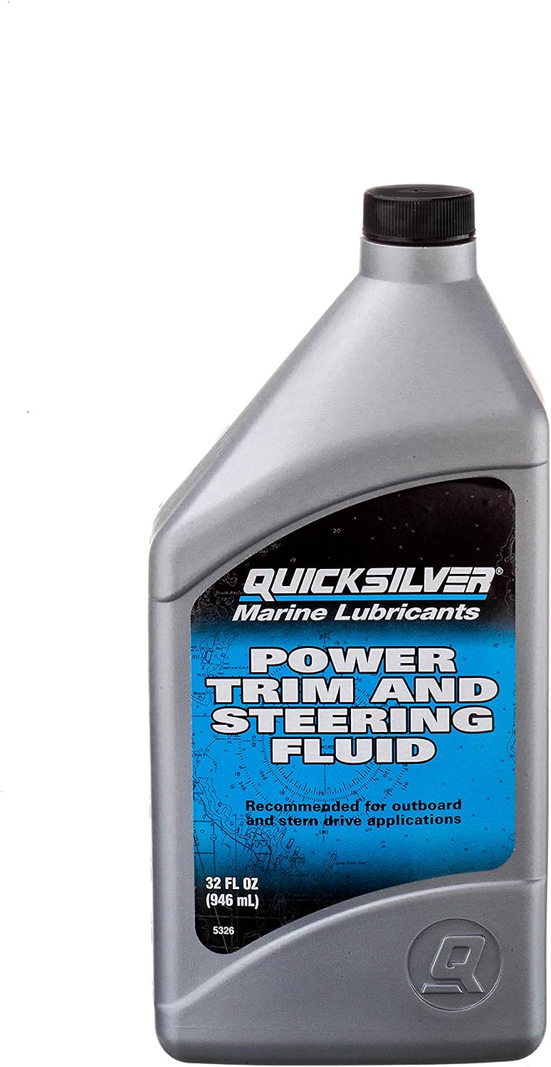 Power Trim & Steering Fluid 858075Q01 is a 32 ounce bottle of quality hydraulic steering fluid for all marine power trim and steering systems except electric power steering systems that require synthetic fluid or non power hydraulic steering systems requiring Hydraulic Helm Steering Fluid. See your owner's manual for requirements and specifications. The Quicksilver brand is the leader in delivering uncompromising engine oils, parts and accessories to the marine industry for over 65 years. Quicksilver is the premier supplier of Mercury Marine Original Equipment replacement engine parts, oils, and accessories, but also works to serve all Original Equipment brands in the marine and powersports industries. It has earned a loyal following by providing the highest quality products that are tested through some of the most rigorous environments and testing procedures. No aftermarket company comes close to the level of research and design as Quicksilver; buying Quicksilver is buying performance, protection and peace of mind.
