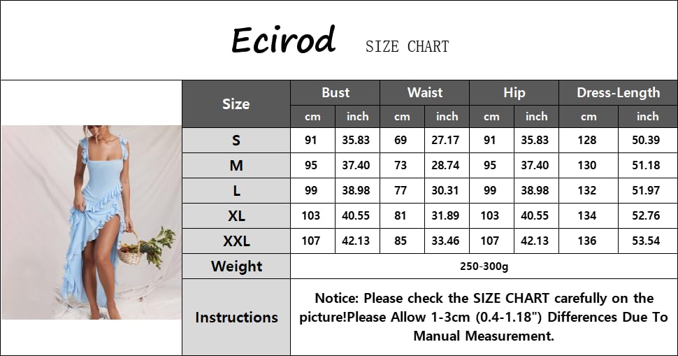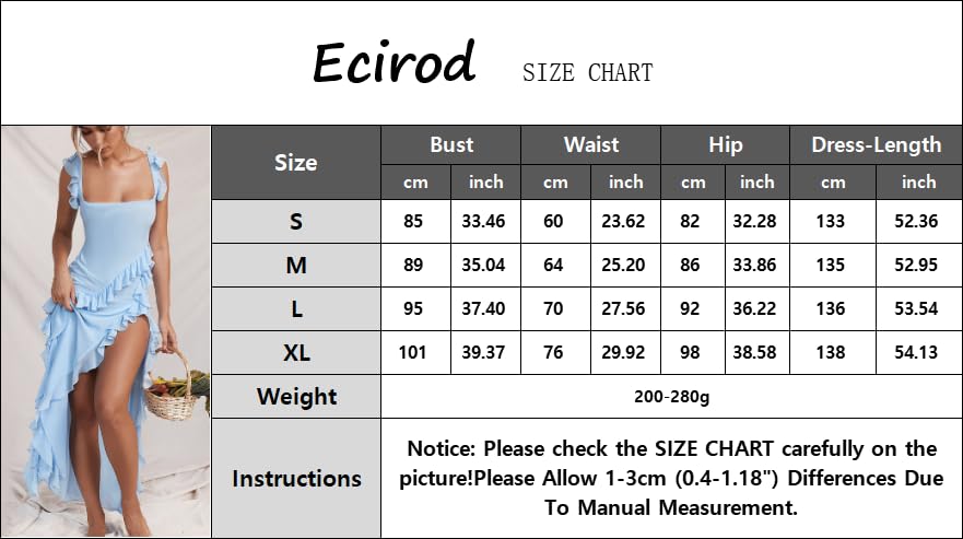 • Feature:Spaghetti strap, sleeveless, square neck, backless, ruffle stitching, solid color, ruched, bodycon slim fitted maxi dress, one side sexy thigh high slit summer maxi dress.