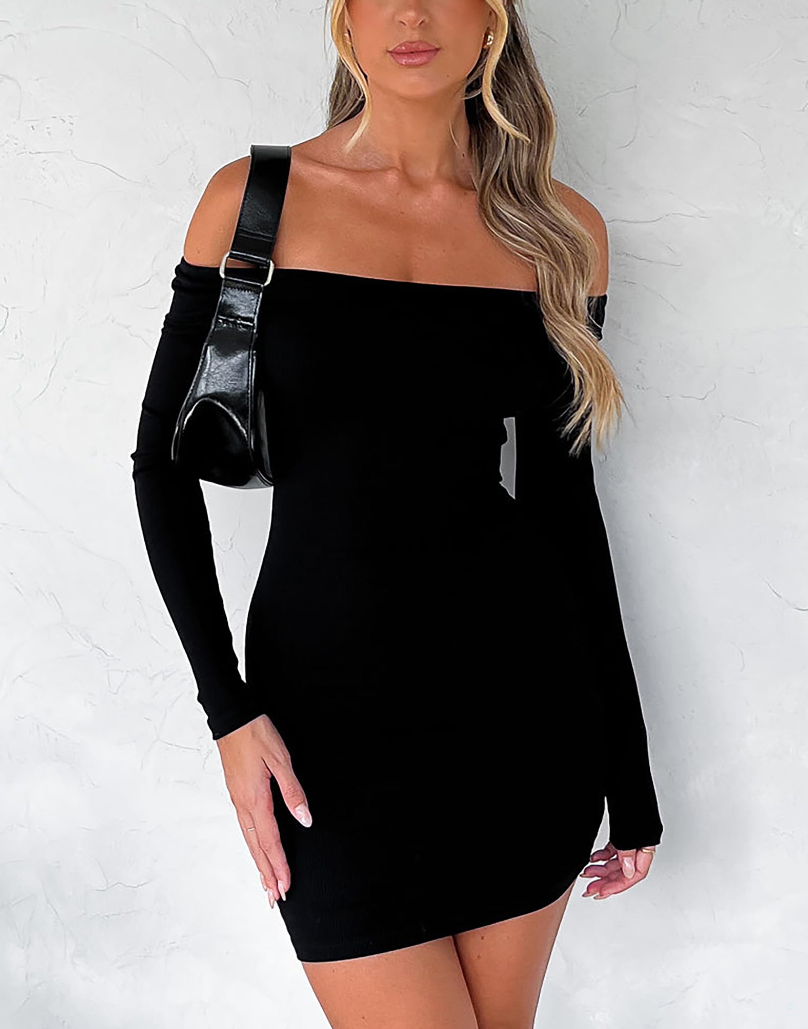 • [Off the Shoulder Dresses for Women] - This long sleeve off the shoulder dress features off shoulder, long sleeve, ribbed knit, mini length, bodycon fit, strapless, backless, basic, casual, party dress for women sexy club, night out dresses for women.