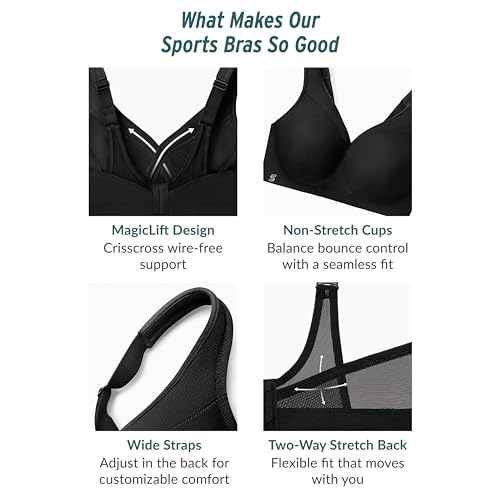 Glamorise Full Figure Plus Size MagicLift Seamless Sports Bra Wirefree #1006 Black