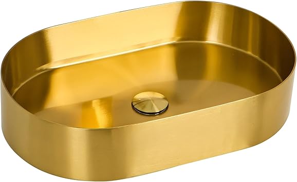 Bathroom Sink, 21.7" x 13.8" x 4.5" Stainless Steel Vessel Sink for Bathrooms, Countertop Sink Vanity with Pop-Up Drain Stopper, PVD Coating Bathroom Vessel Sinks, Gold, Elliptical