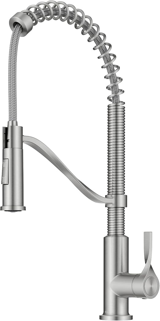 KRAUS Torak Pull Down Kitchen Faucet in Spot-Free Stainless Steel with Commercial Style Spring Spout, 2 Function Sprayer, Pre-Attached Water Lines, and Mounting Hardware, KPF-2635SFS