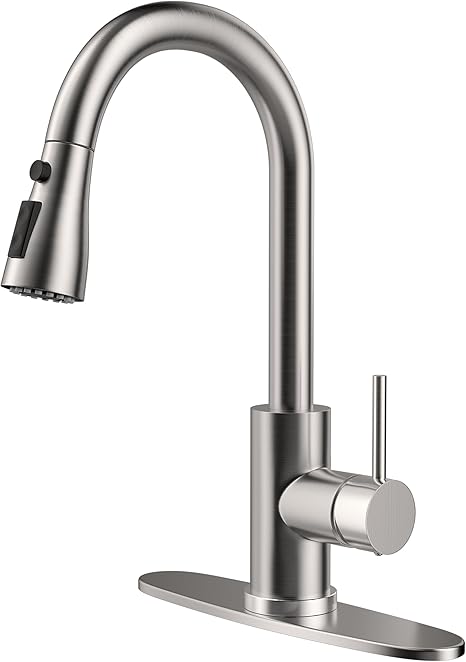 Single Handle High Arc Brushed Nickel Pull Out Kitchen Faucet, Single Level Stainless Steel Kitchen Sink Faucet with Pull Down Sprayer and 10 Inch Deck (Brushed Nickel)