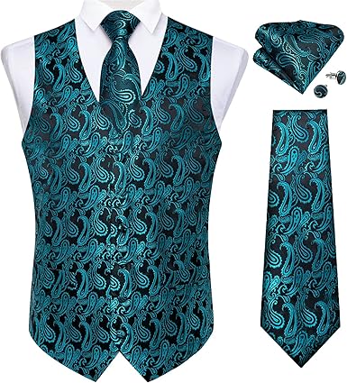 DiBanGu Mens Vest and Tie Set Formal Paisley Waistcoat and Necktie Pocket Square Cufflinks Silk Suit Vest for Tuxedo Wedding