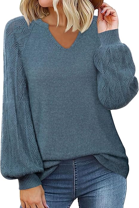 Messic Womens Pullover Sweaters 2024 Casual Long Sleeve V Neck Loose Knit Tops