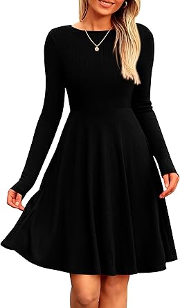PRETTYGARDEN Women's Fall Short Dress Ribbed Knit Crewneck Long Sleeve A Line Flowy Casual Elegant Cute Going Out Dresses