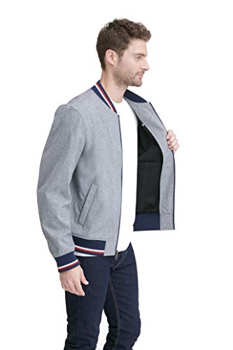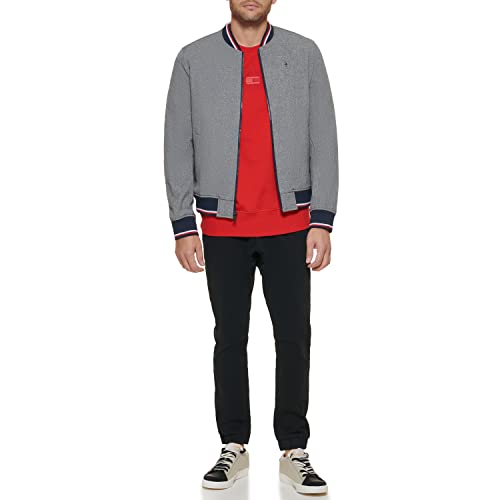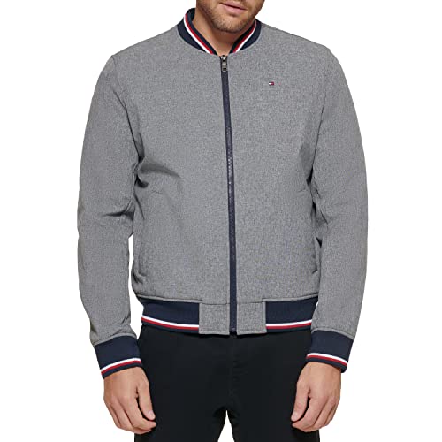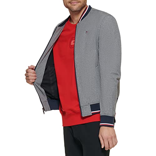 Tommy Hilfiger Men's Lightweight Varsity Rib Knit Bomber Jacket, Heather Grey soft shell, Medium