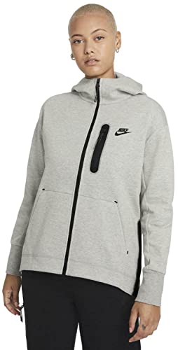 Nike Sportswear Women's Tech Fleece Essential Full-Zip Hoodie (Grey Heather/Black, Large)