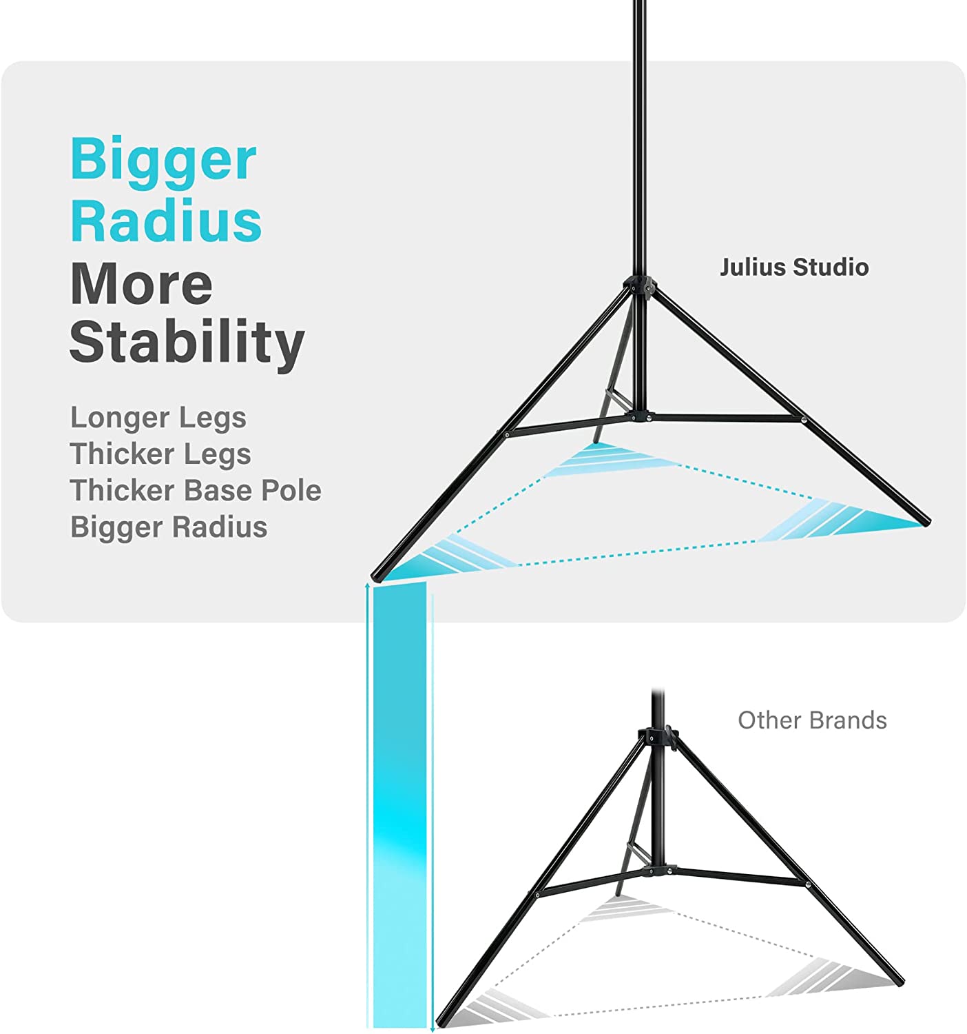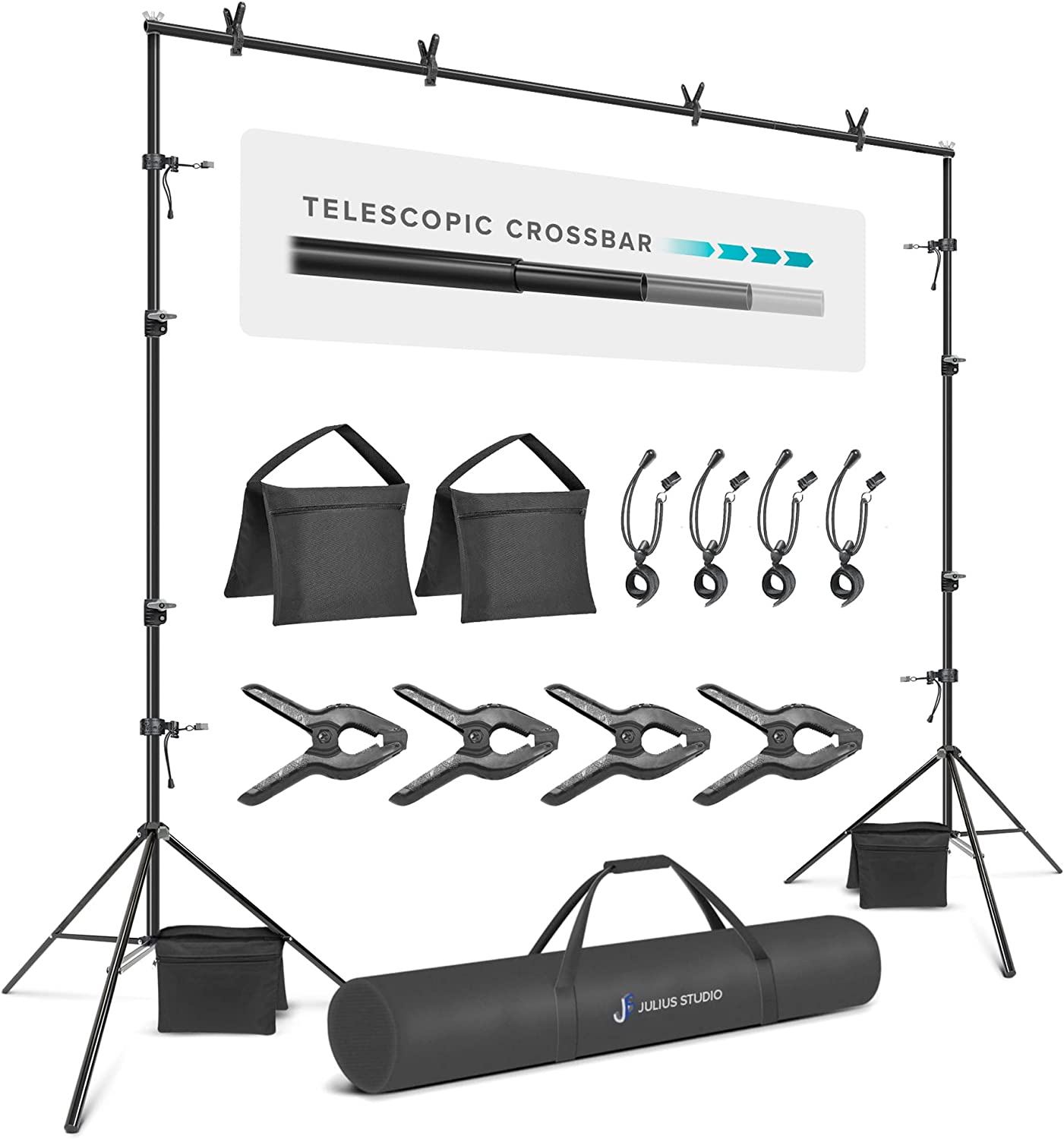 Julius Studio 10.1 ft. Wide Extra Crossbar Length Adjustable Backdrop Stand, 7.5 ft. Tall Extra Height (Max 122 x 92 inch) Photo Background Support System with Clamps, Elastic String Clip, JSAG283