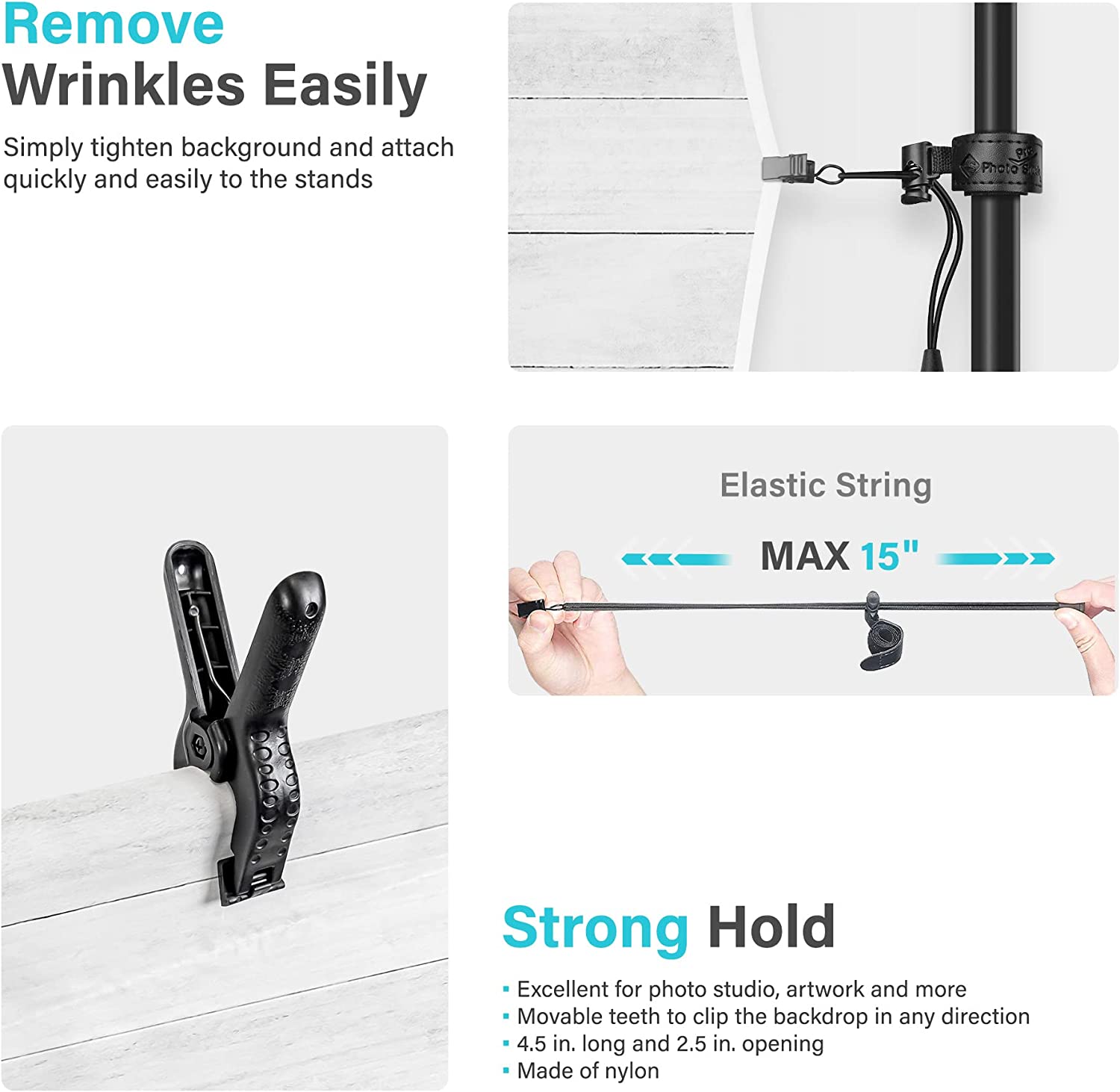 • 🏆Holds Canvas, Muslin, Paper / Photo Clamps for Strong Grip to Prevent Backdrop Slip-out / Indoor Use Preferable
