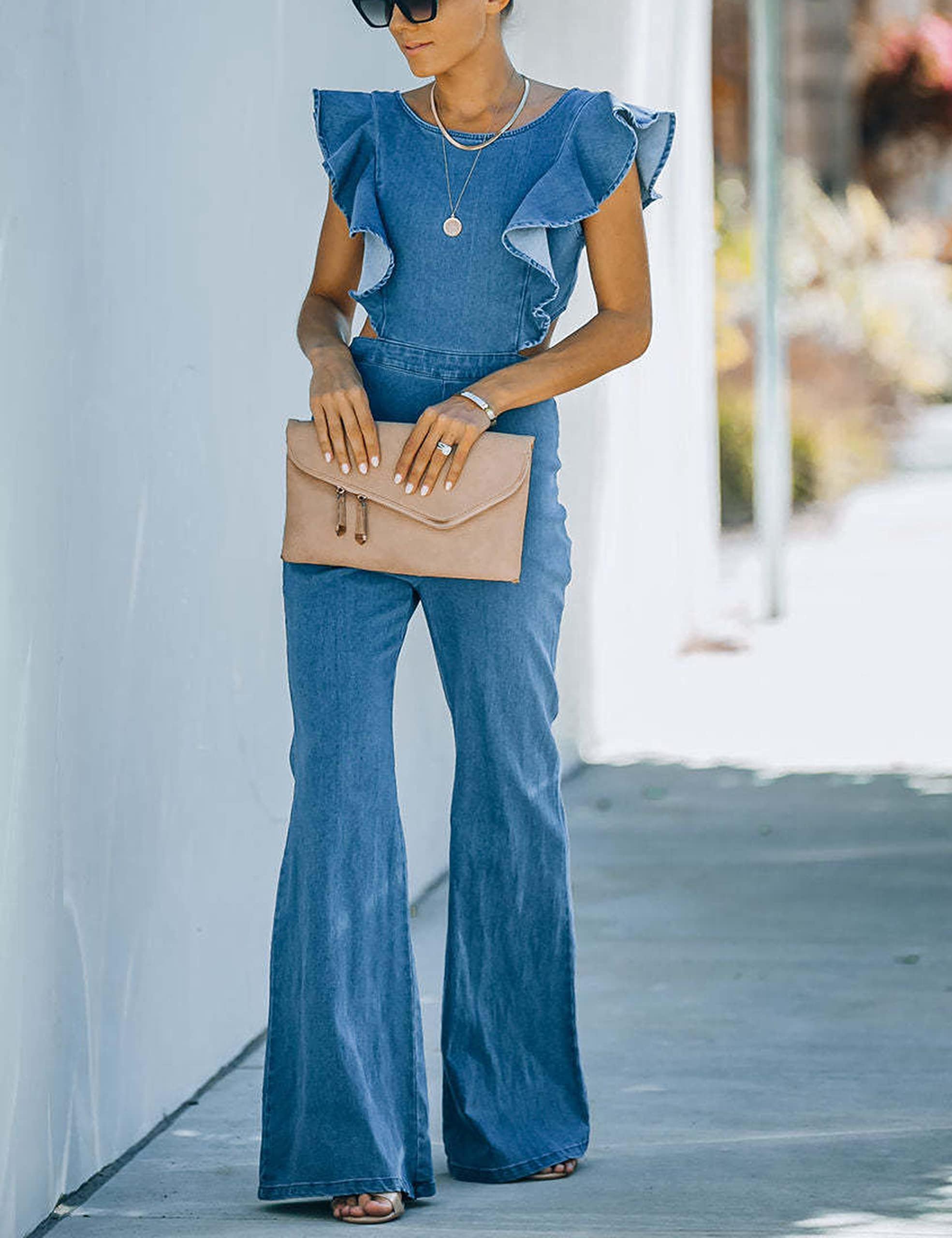 • Vintage ruffled denim jumpsuits for women, perfect for street, holiday, vacation, party, club, date, work, suit for Spring, Summer, early Fall