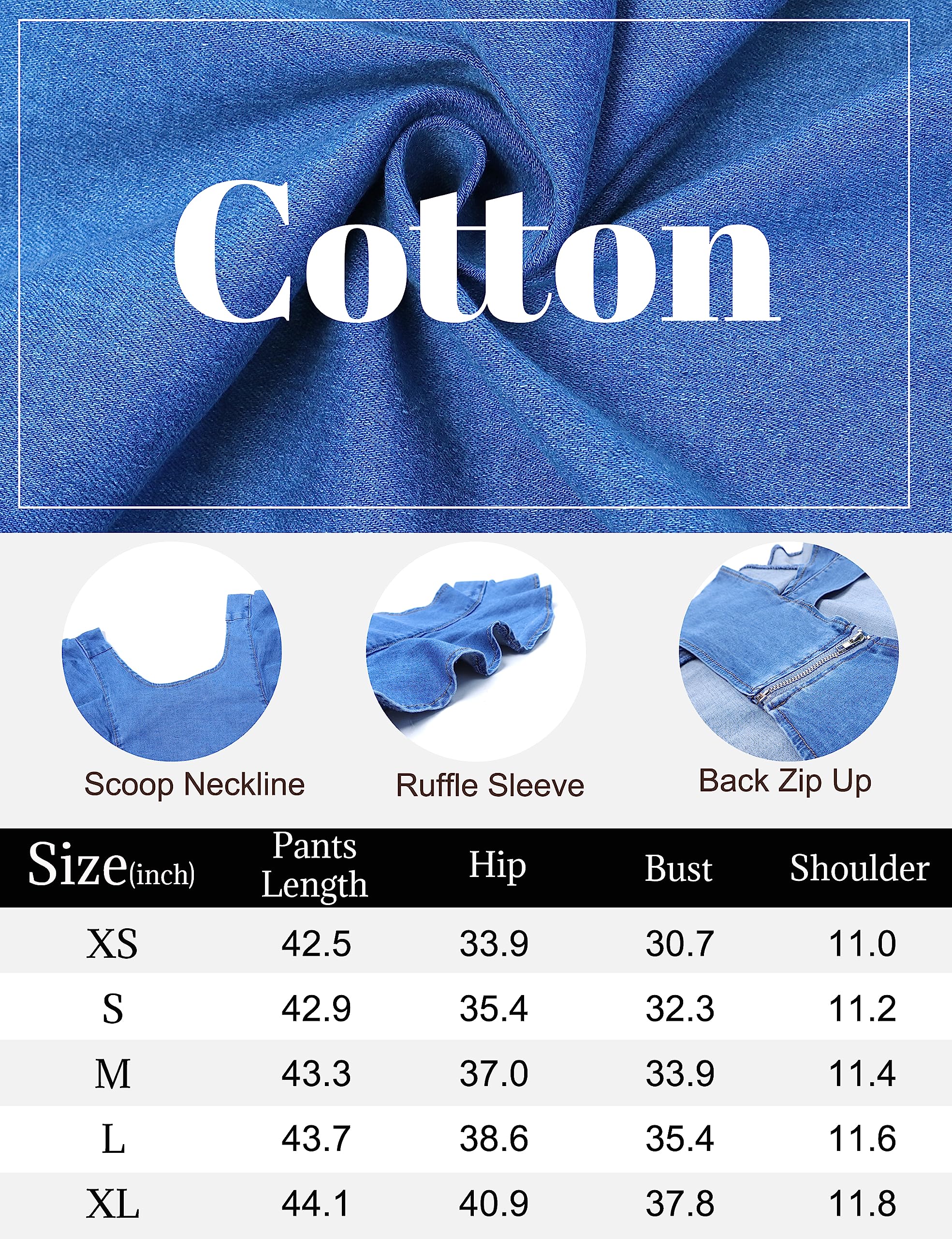 Omoone Women's Flared Denim Jumpsuit Ruffle Sleeve Backless Jeans Jumper Long Rompers(3219-Blue-S)