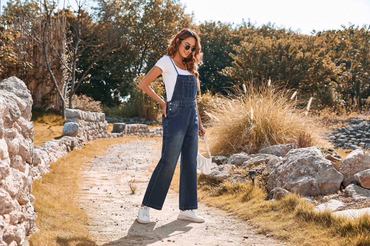 • Vintage and trendy style, 2024 fashion high waist straight leg overall jumpsuits, casual loose onesie pants, one piece denim trousers, relaxed fit jean jumpsuit, hippie baggy denim bib. Perfectly paired with shirt, crop top, cami top, blouses, hoodie, sunglasses, hats, sandal, wedge shoes, sneakers, for a charming and flattering look.