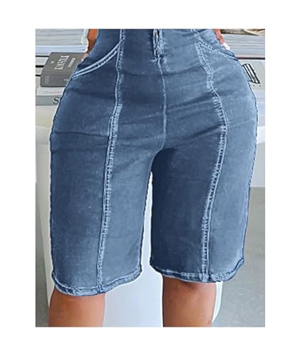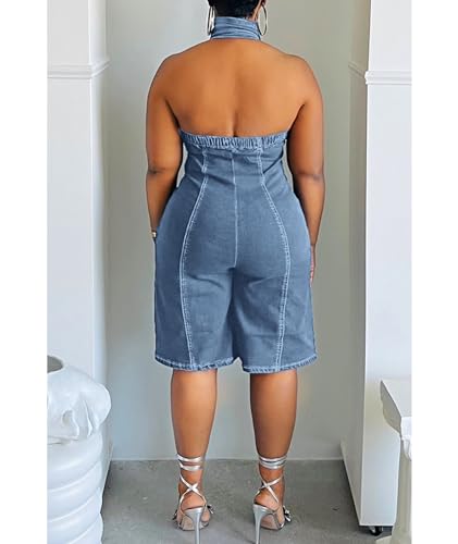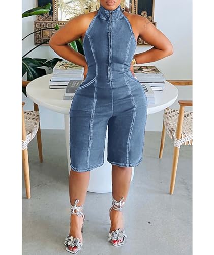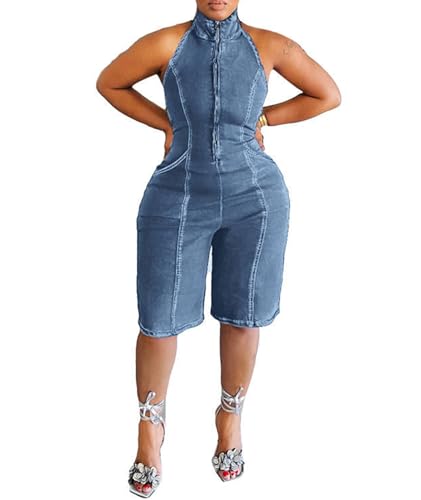 Sexyshine Women's Zipper Front Sleeveless Denim Jumpsuit Halter Backless Open Back Short Pant Jeans One Piece Rompers Overalls(26711LB,3XL)