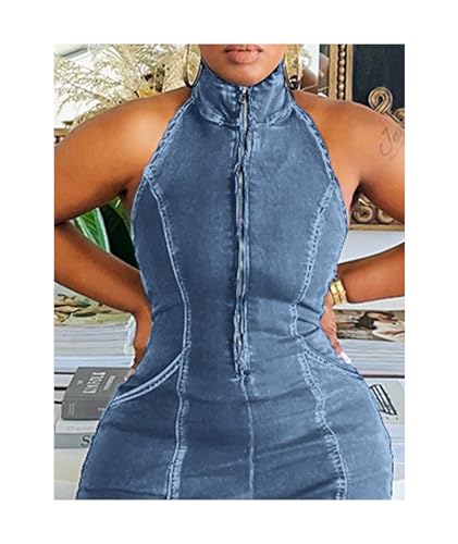 • ★☆Design☆★ Sleeveless Denim Jumpsuit,Halter Backless Jumpsuit,Cold Shoulder Jumpsuits,Summer Jumpsuit,Zipper Front Jean Jumpsuit,Open Back Denim Jumpsuit,Mock Neck,Wide Leg Rompers,Y2K Club Night Outfit
