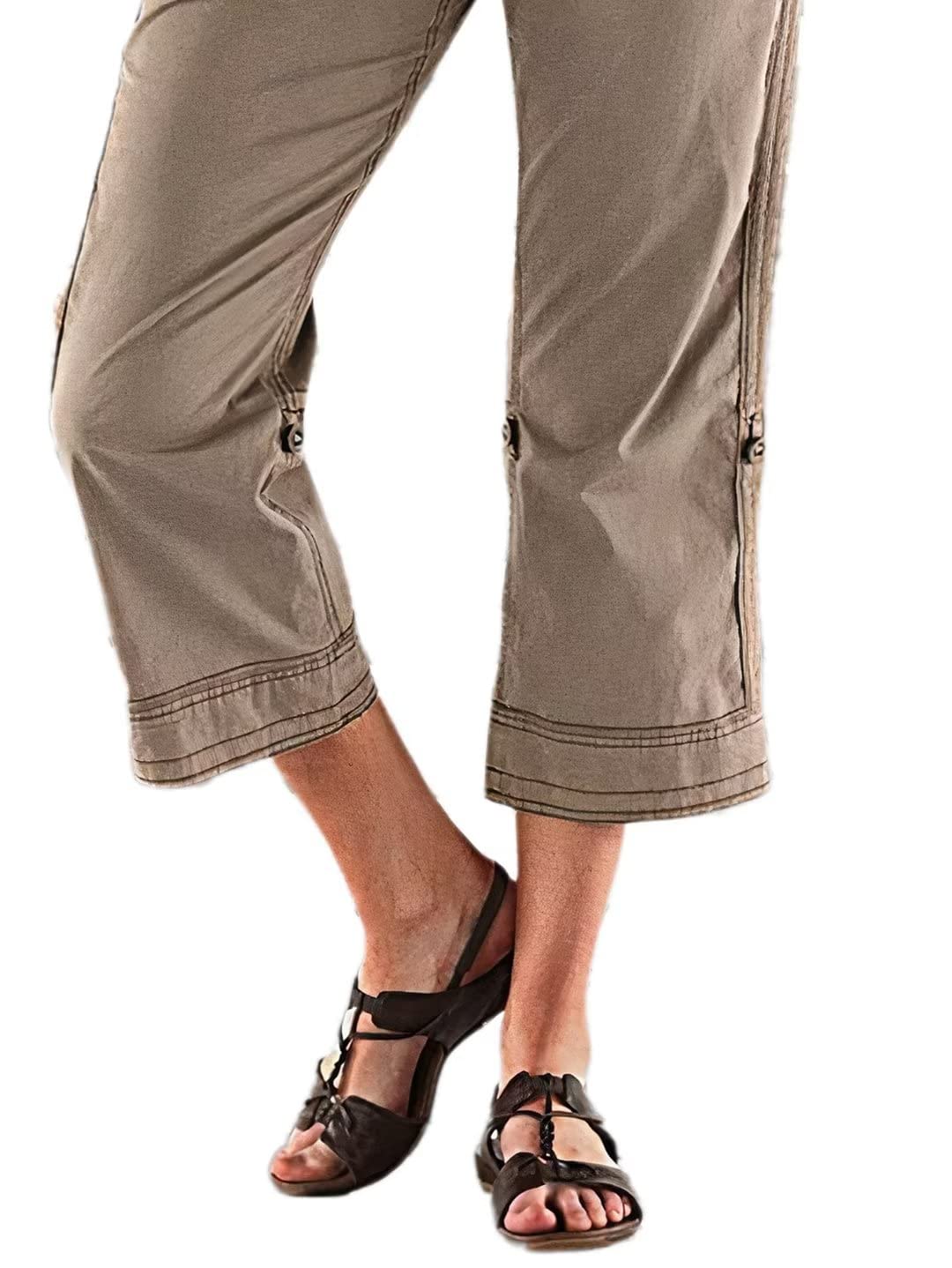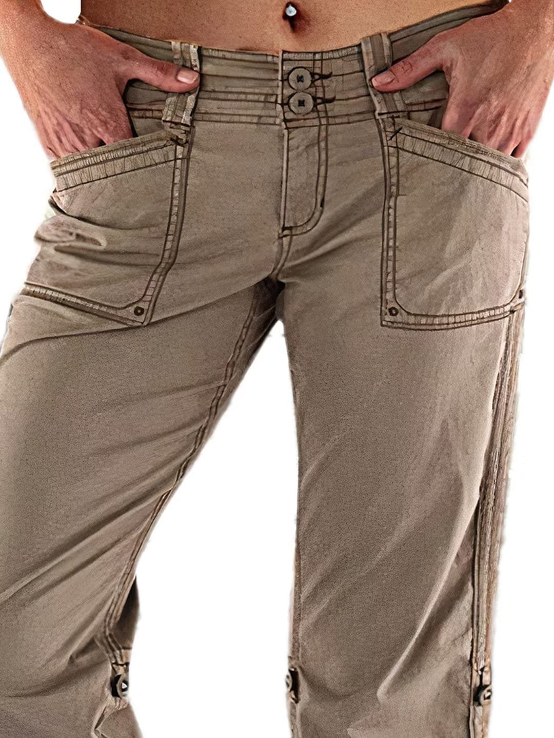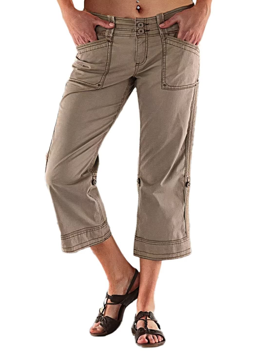 Flamingals Women's Solid Slant Pocket Crop Jeans Low Waist Casual Pants Khaki