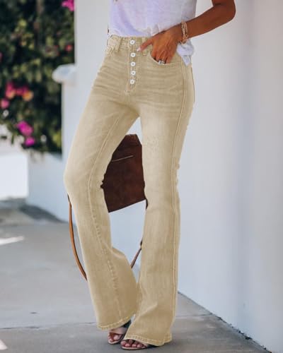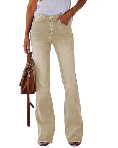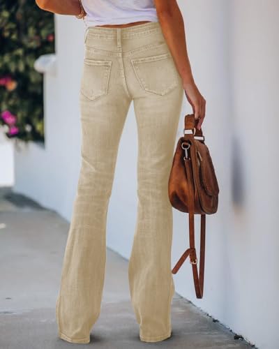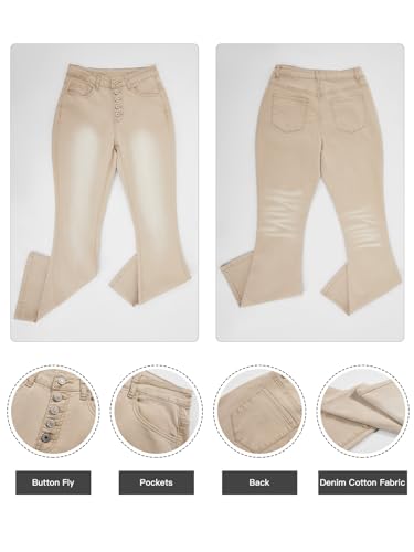 Koinshha Womens High Waisted Jeans Boyfriend Stretch Flare Casual Bootcut Denim Pants Khaki