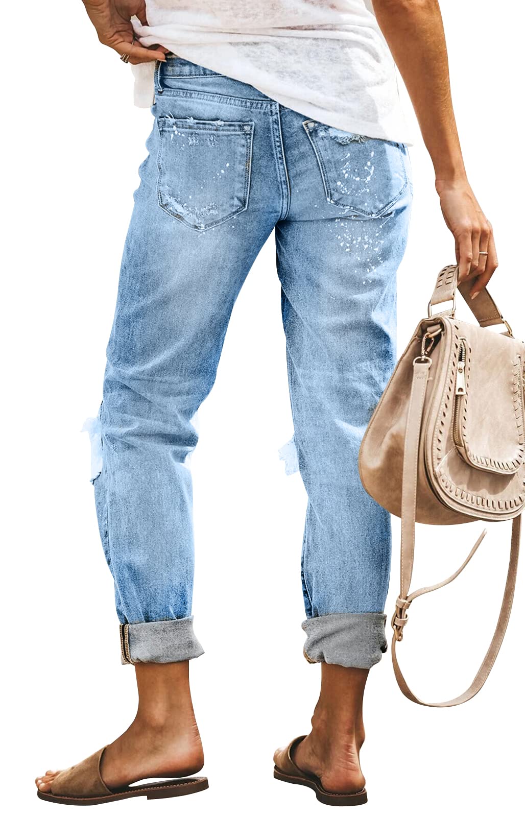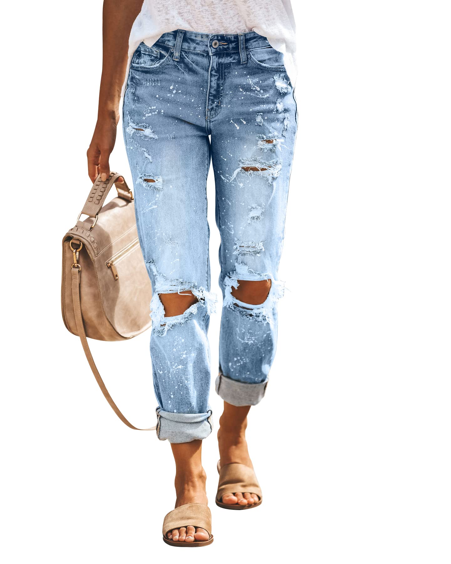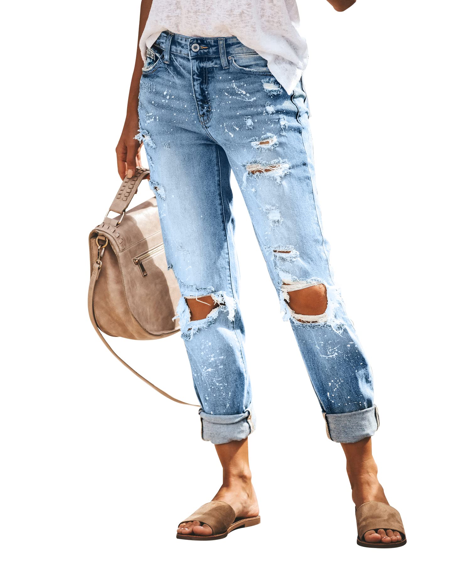KUNMI Women's Ripped Mid Waisted Boyfriend Jeans Loose Fit Distressed Stretchy Denim Pants…