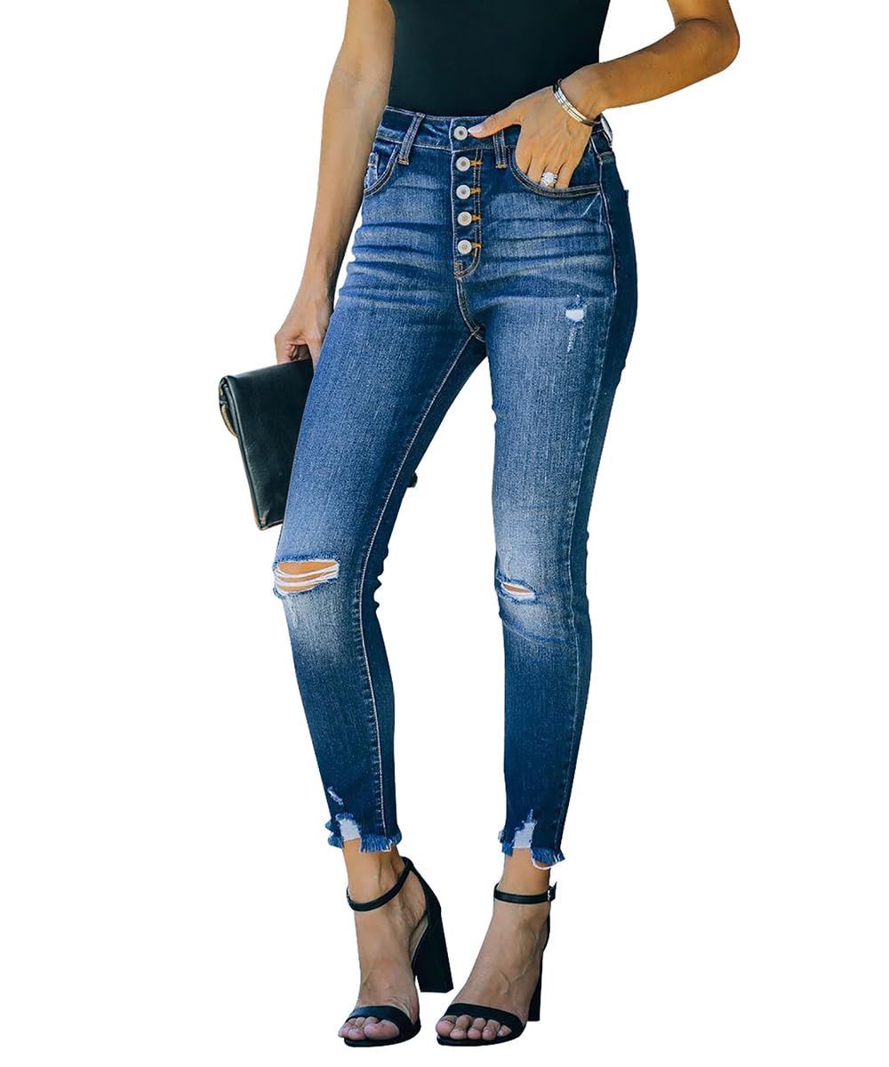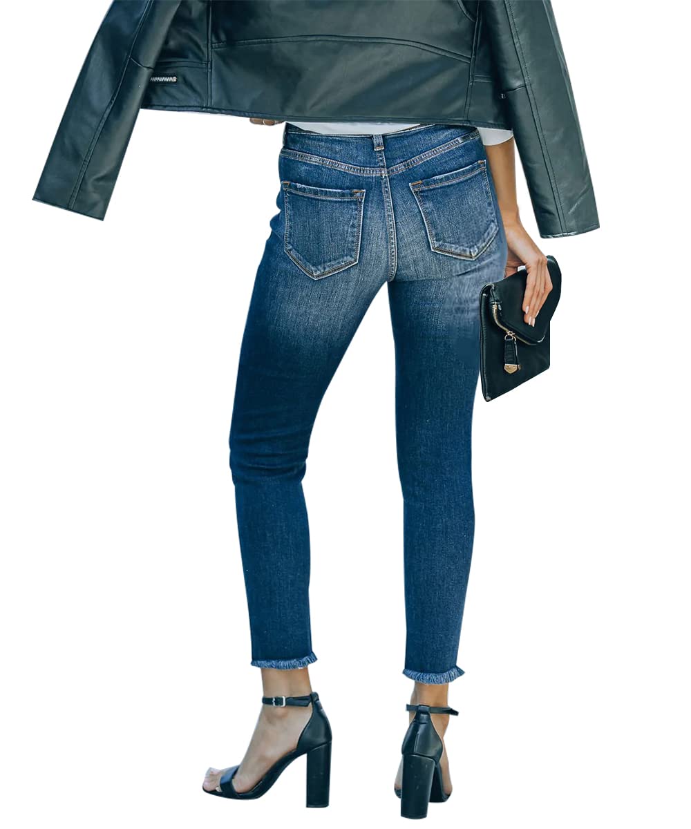 KUNMI Women's Ripped Skinny Slim Fit Jeans Frayed Distressed Stretchy Denim Pants