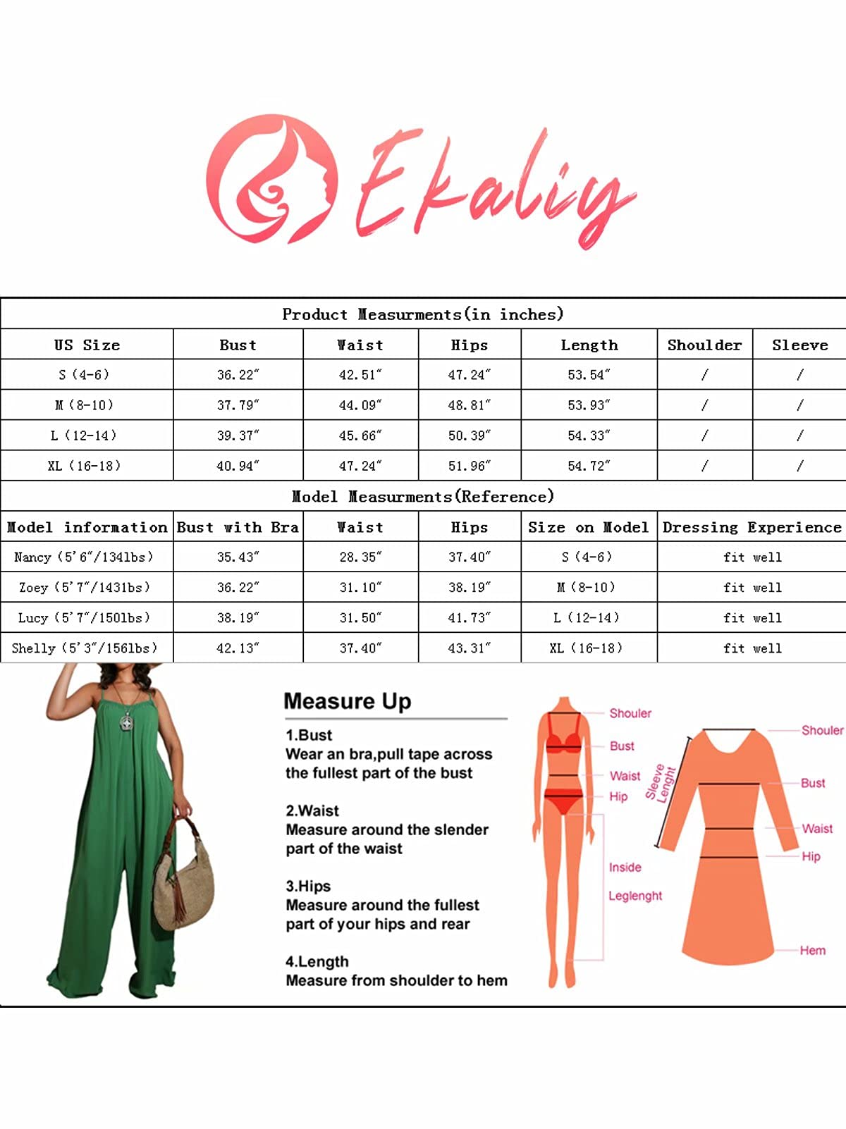 Details: Ekaliy Women’s Sexy Spaghetti Strap Solid Color Sleeveless High Waist Wide Leg Long Pants Jumpsuit One Piece Club Outfits