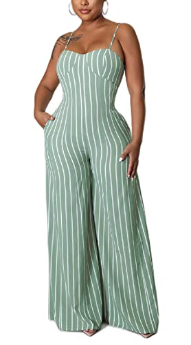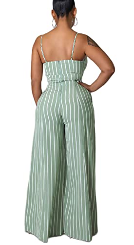 loveimgs Women's Sexy Spaghetti Straps Corset Fit Stripes Straight Wide-Leg Jumpsuit Romper Overall (Large, Green)