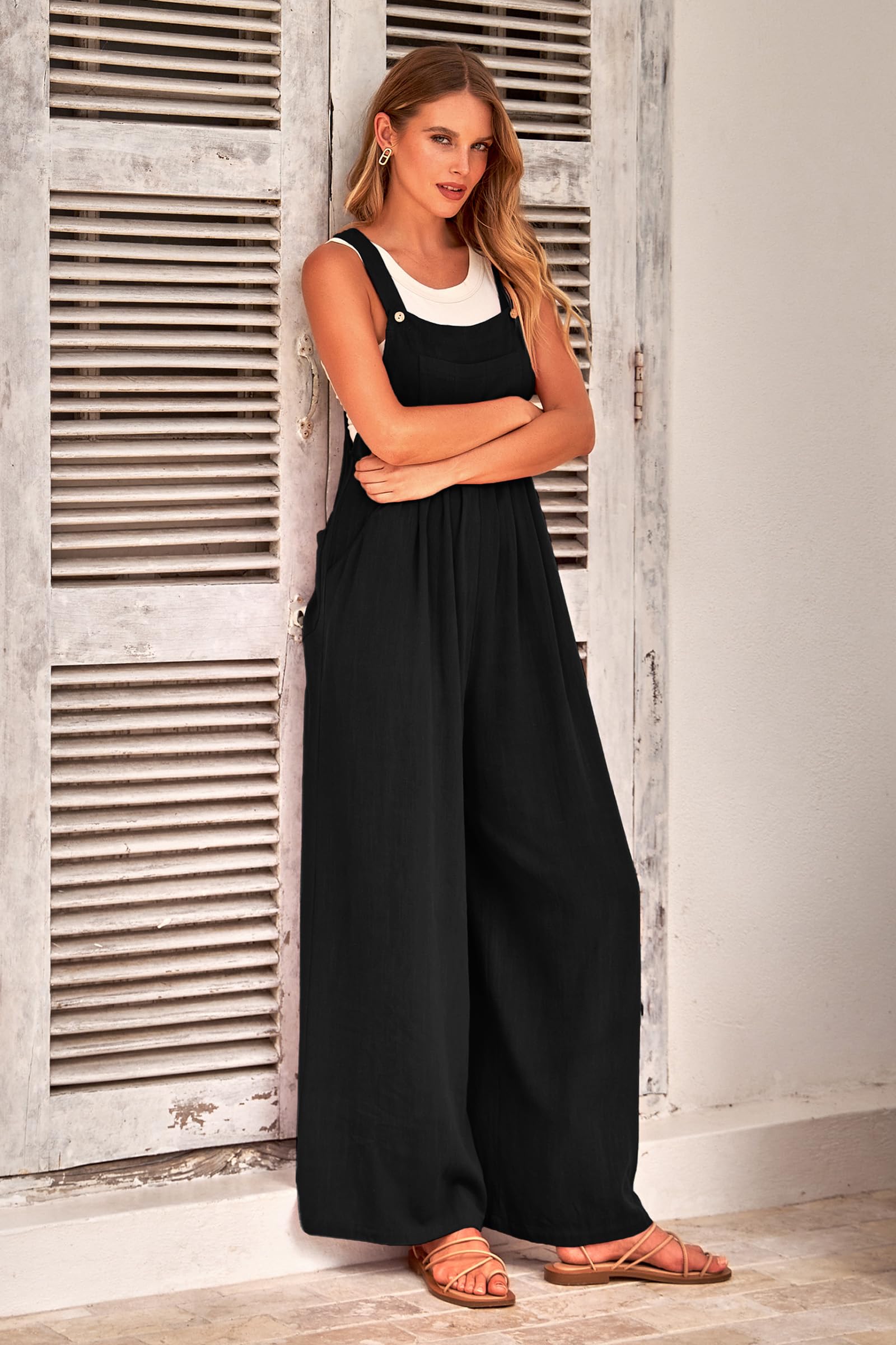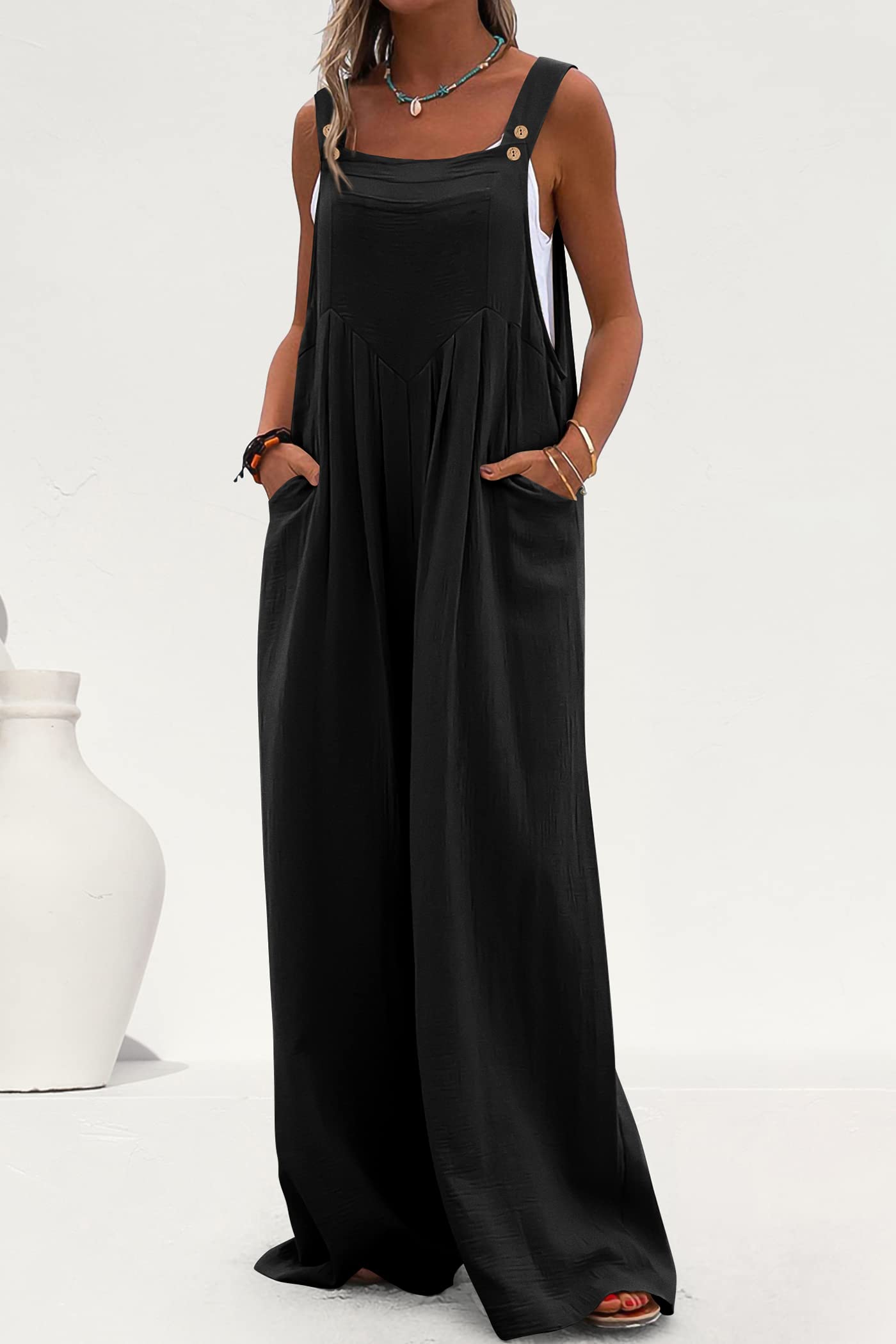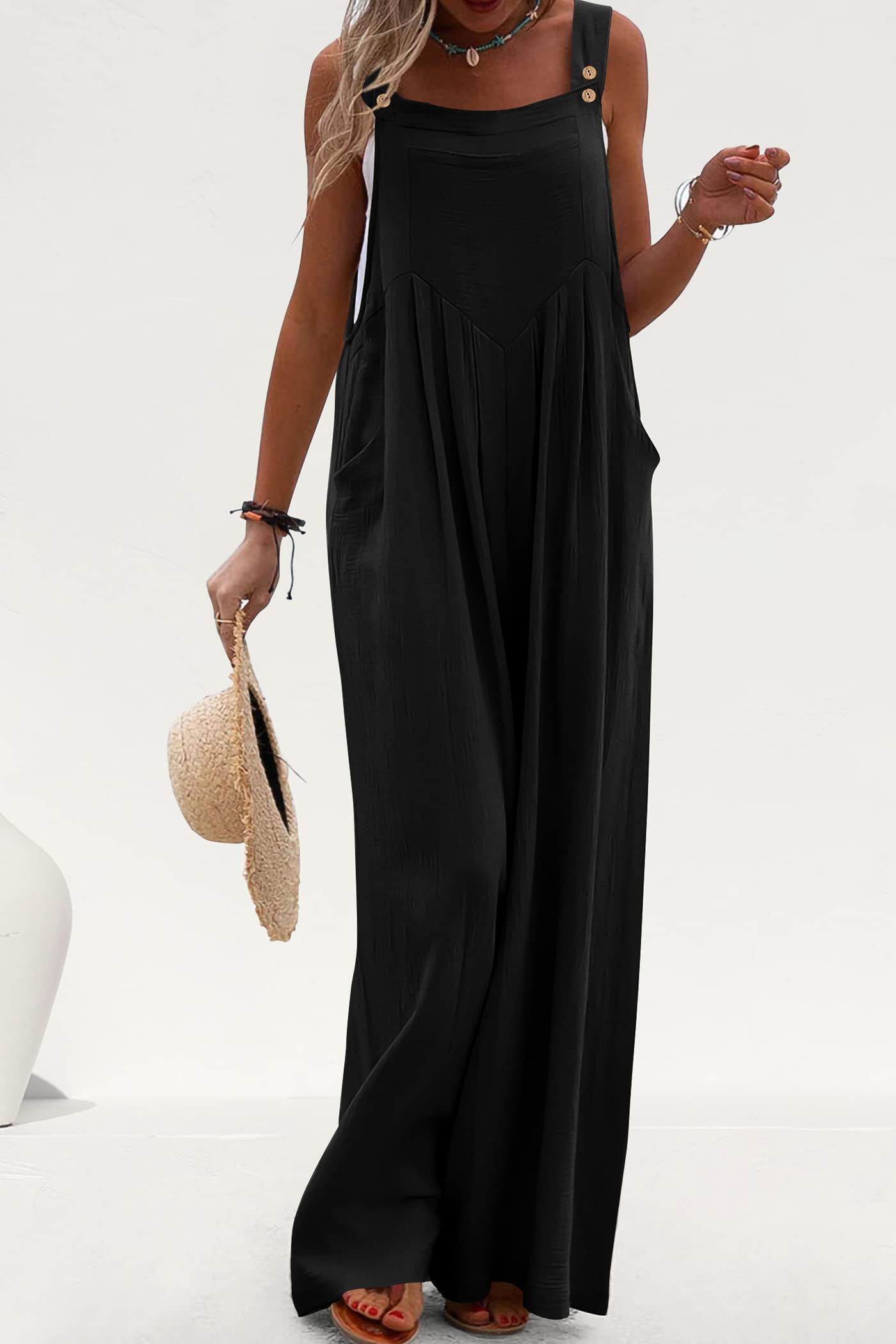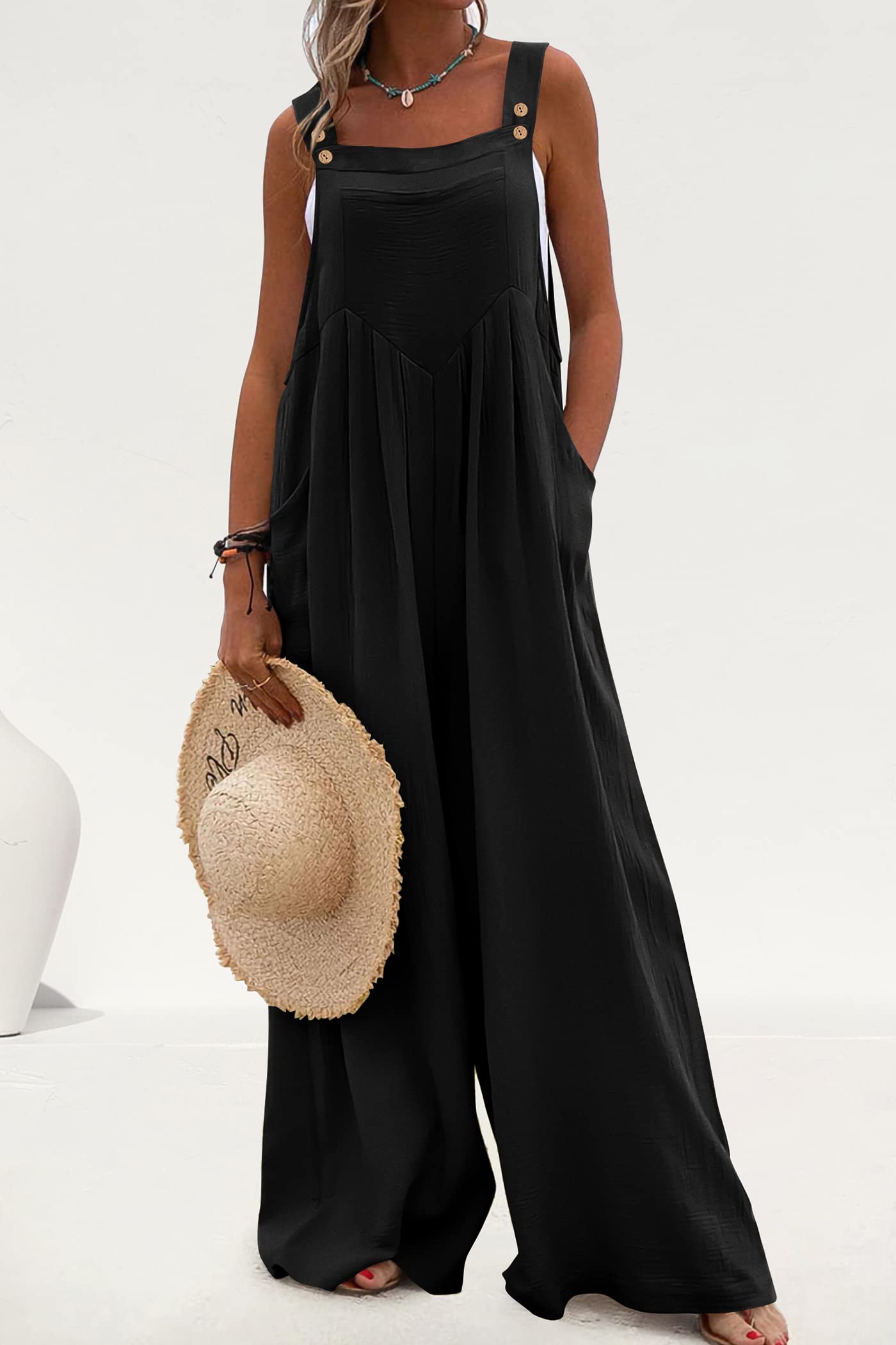 • STYLISH DESIGN: Women Summer Overalls/Dressy Jumpsuits For Women/Pants Rompers For Women/One Piece Outfits For Women/Adjustable Strap Overalls For Women Sleeveless Jumpsuits For Women/Wide Leg Overalls For Women Loose Fit/Palazzo Jumpsuit With Pockets/Baggy Bib Overalls For Women