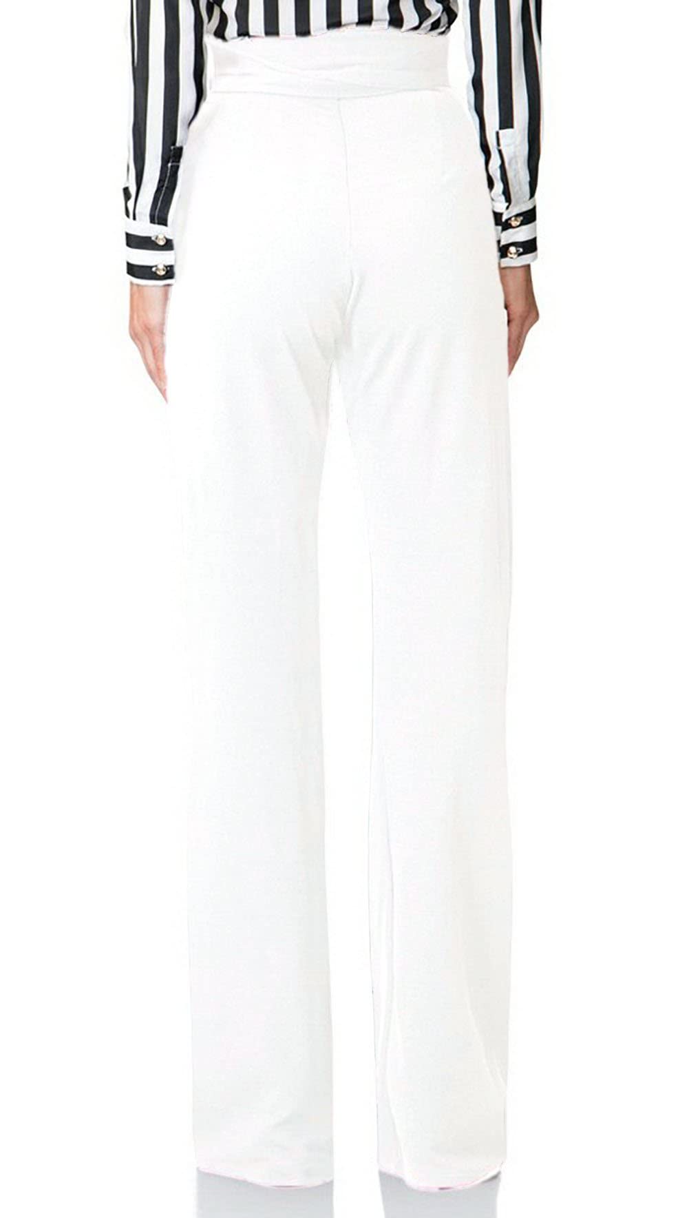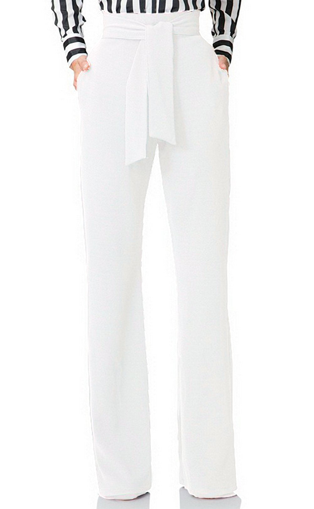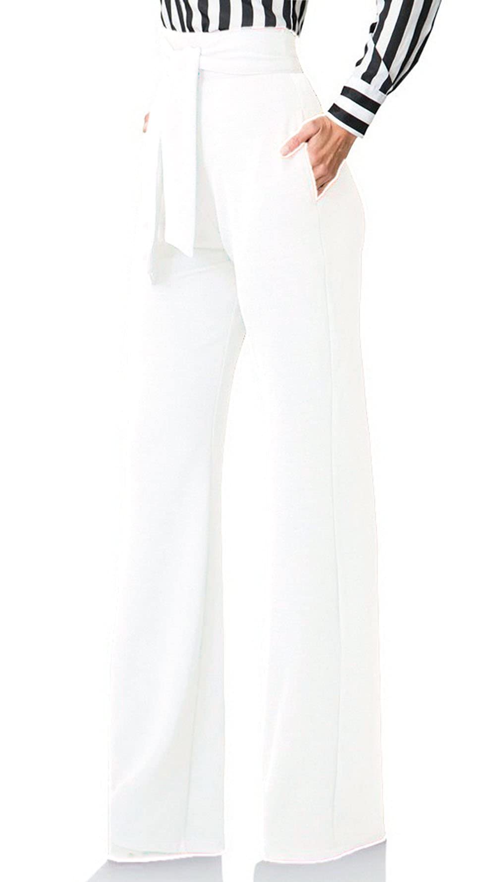 Lucuna Women's Slim Fit High Waisted Pants | Wide Straight Leg Trousers with Belt | White, Medium