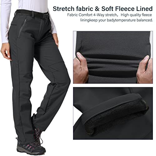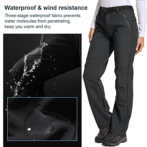 • Waterproof Pants Women: High-level waterproof soft shell Surface layer, Mid layer stretch quick dry breathable fabric, inner layer high-end fleece, fully to block stains and liquids while maintain good permeability, Keep you dry and warm.