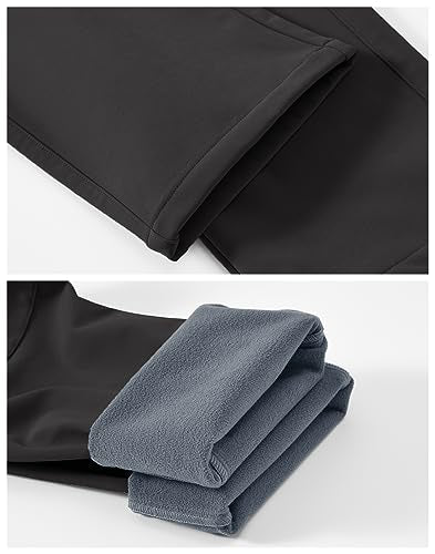 TBMPOY Women's Skiing Hiking Cargo Pants Outdoor Waterproof Windproof Softshell Fleece Snow Pants Black M