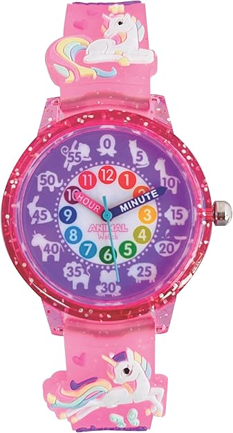 Animal Preschool Watch - Quality Teaching Time Analog Watch with 3D Band, Animals, Colors and Numbers for Children, Kids, Boys, Girls