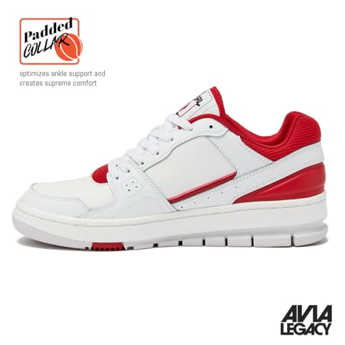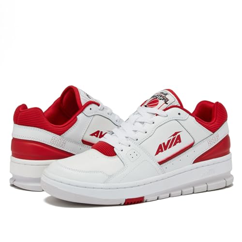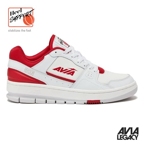 Avia 816 Men’s Basketball Shoes, Low Top Retro Sneakers for Indoor or Outdoor, Street or Court - White/Red, 9 Medium