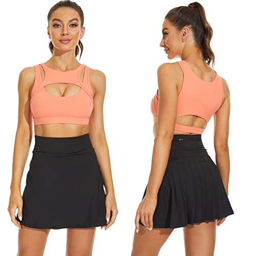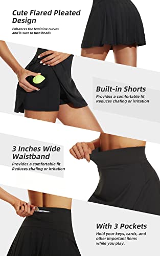 Betaven Pleated Tennis Skirts for Women with Pockets Build in Shorts Golf Skort High Waisted Athletic Running Activewear,A-Black,Medium