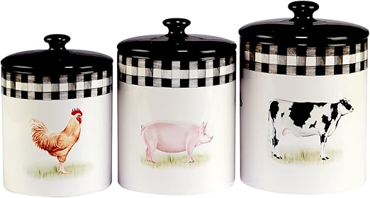 Certified International Farm 3 Pc Canister Set, 52 oz, 74 oz, 96 oz, Multicolored