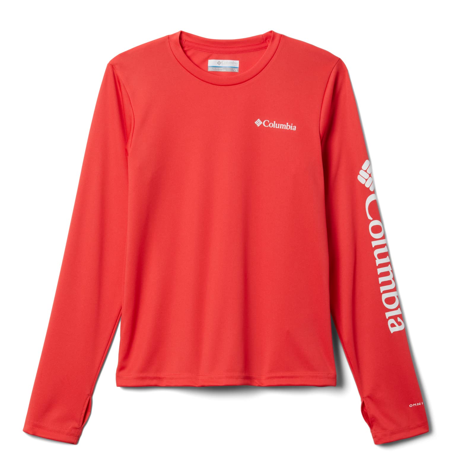 Columbia Youth Unisex Fork Stream Long Sleeve Shirt, Red Hibiscus, Large
