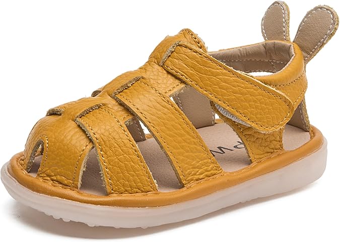 DADAWEN Baby Boys Girls Closed Toe Summer Sandals Lightweight Non-Slip Soft Sole Leather Athletic Sandals Outdoor Toddler First Walking Shoes