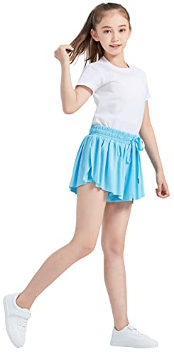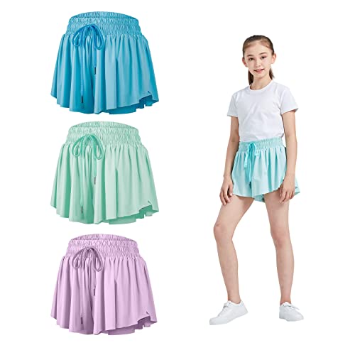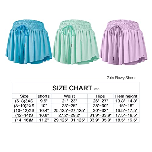 Flowy Skirt Shorts for Teen Girls Gym Yoga Athletic Workout Running Women Cute Butterfly Tennis Skorts Skirts High Waisted Preppy Trendy Clothes Summer(Light Blue Green Lavender,S)