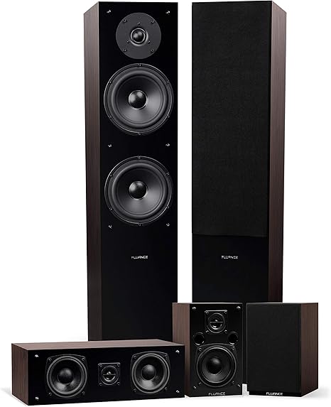 Fluance Elite High Definition Surround Sound Home Theater 5.0 Channel Speaker System Including Floorstanding Towers, Center Channel and Rear Surround Speakers - Natural Walnut (SXHTBW)