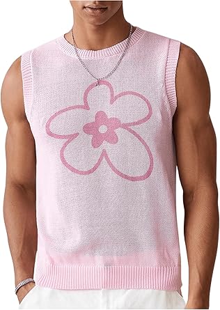 GORGLITTER Men's Floral Pattern Knit Sweater Vest Sleeveless Round Neck Crochet Tank Top