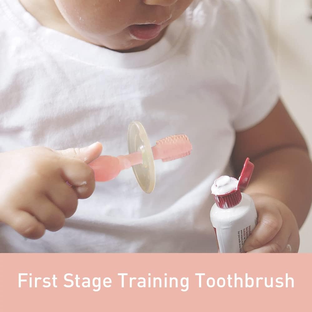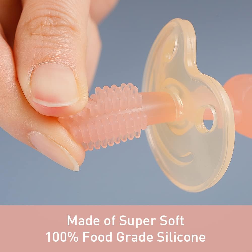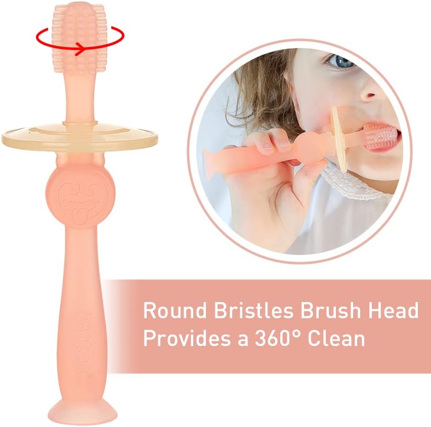 haakaa Infant Toothbrush, Easy to Hold 360° Baby Toothbrush, Train 6month+ Infants Babies and Toddlers for Oral Hygiene, Teether Effect for Sore Gums, 1pc (Pink)