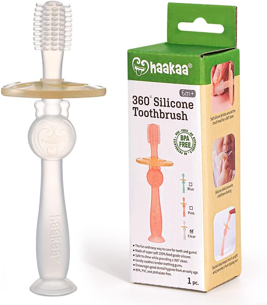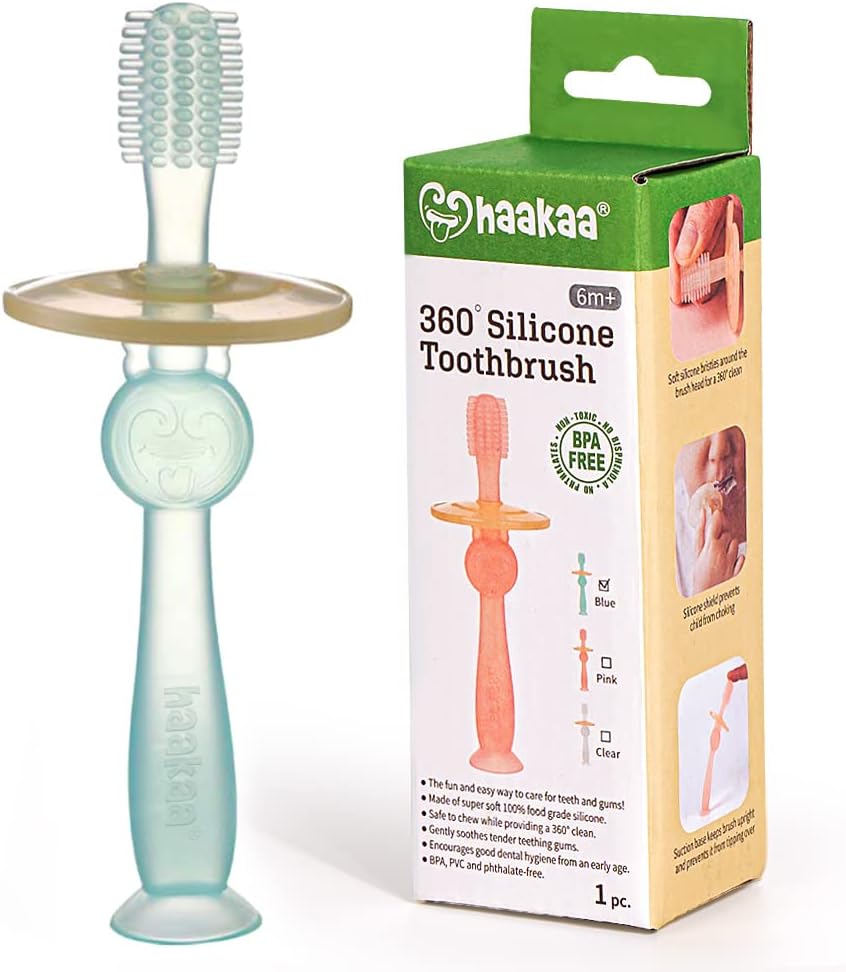 • Safe and High-Quality: Crafted from food-grade silicone, the Haakaa Baby Toothbrush is safe for your little one. It is free from harmful chemicals like BPA, PVC, and phthalates. Rest assured knowing that your baby is using a high-quality toothbrush designed with their safety in mind.