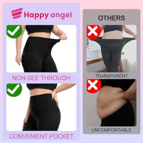 Happy.angel Plus Size Leggings with Pockets for Women, High Waisted Black Yoga Workout Leggings 3X 4X