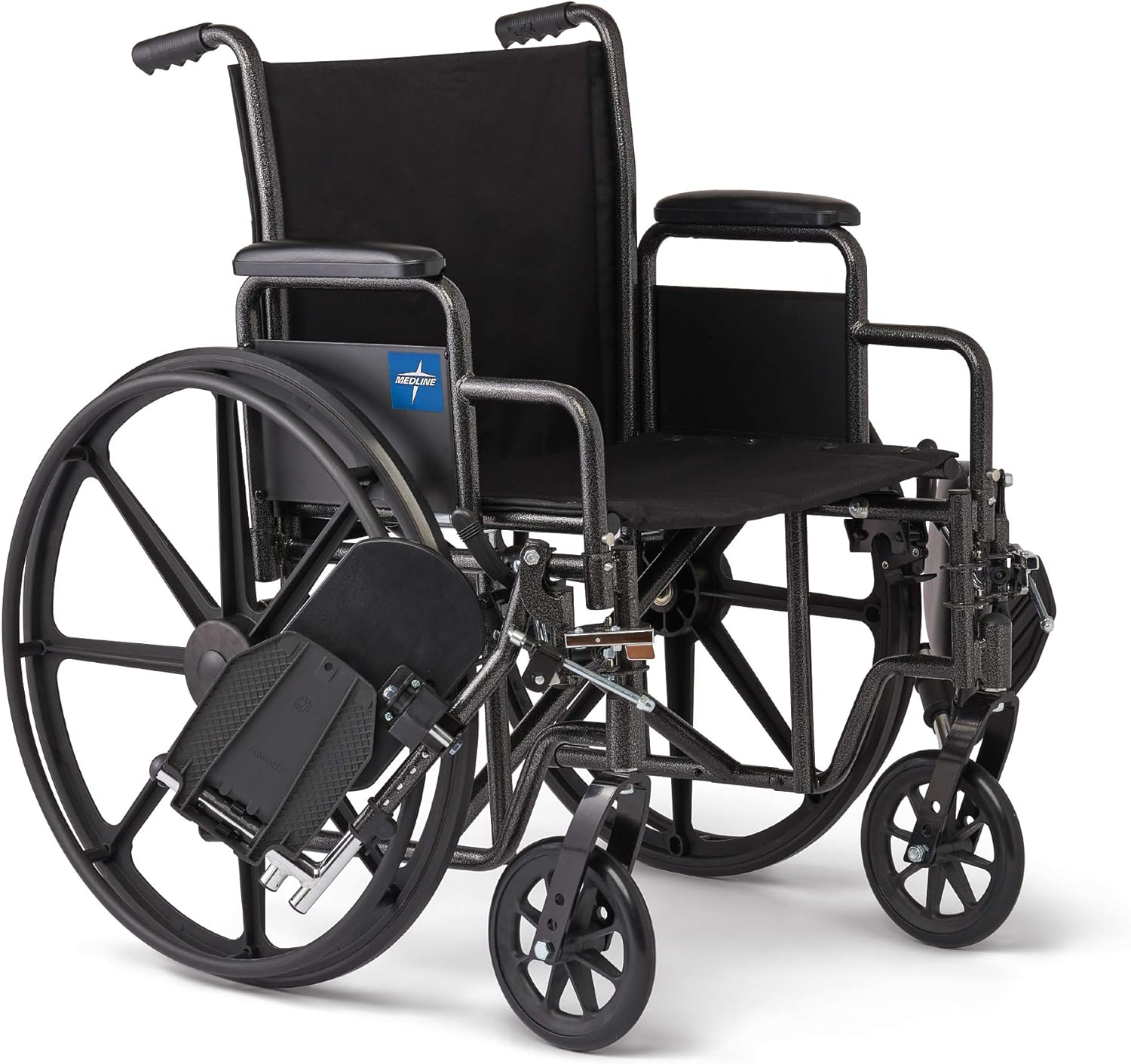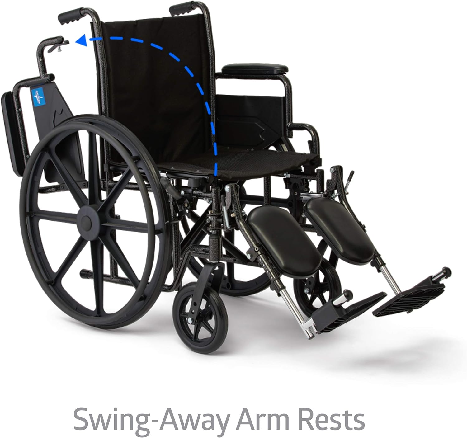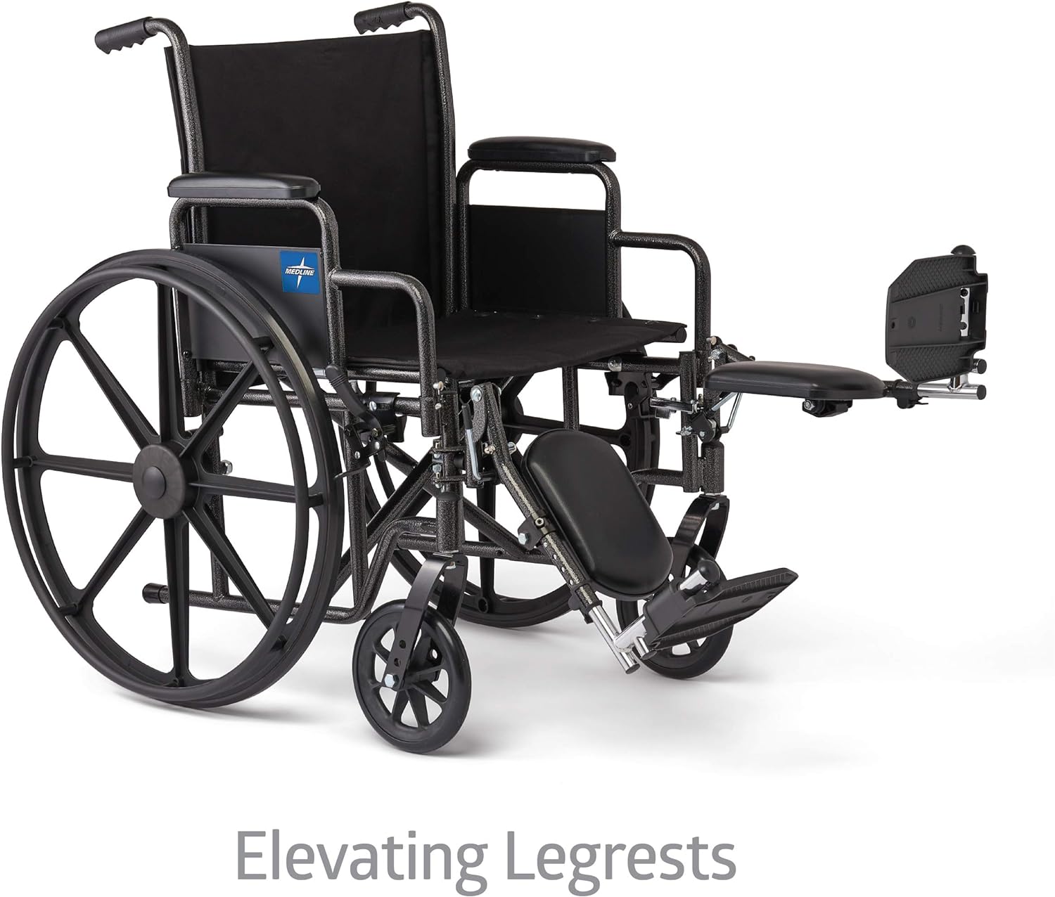 Medline Durable Steel Wheelchair with Flip-Back Desk-Length Arms, Elevated Leg Rests, 20-Inch Wide Seat, 300-Ib weight capacity, Black