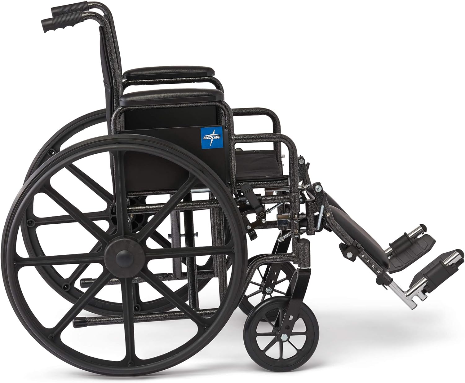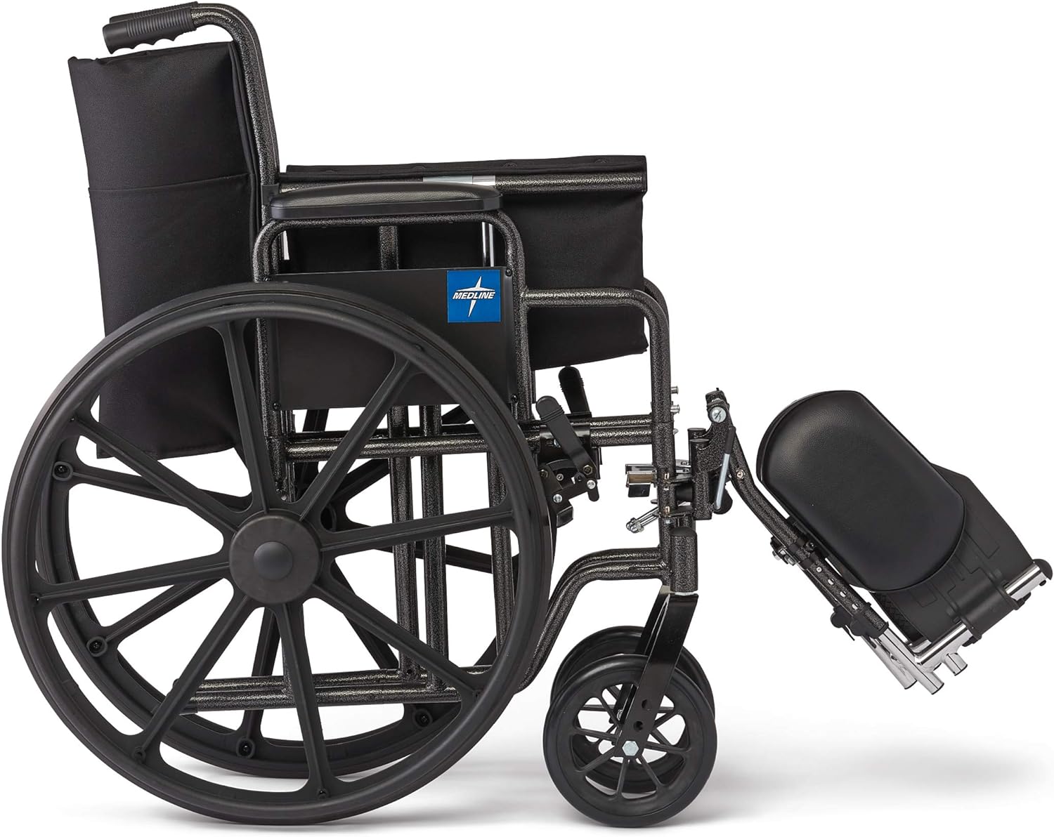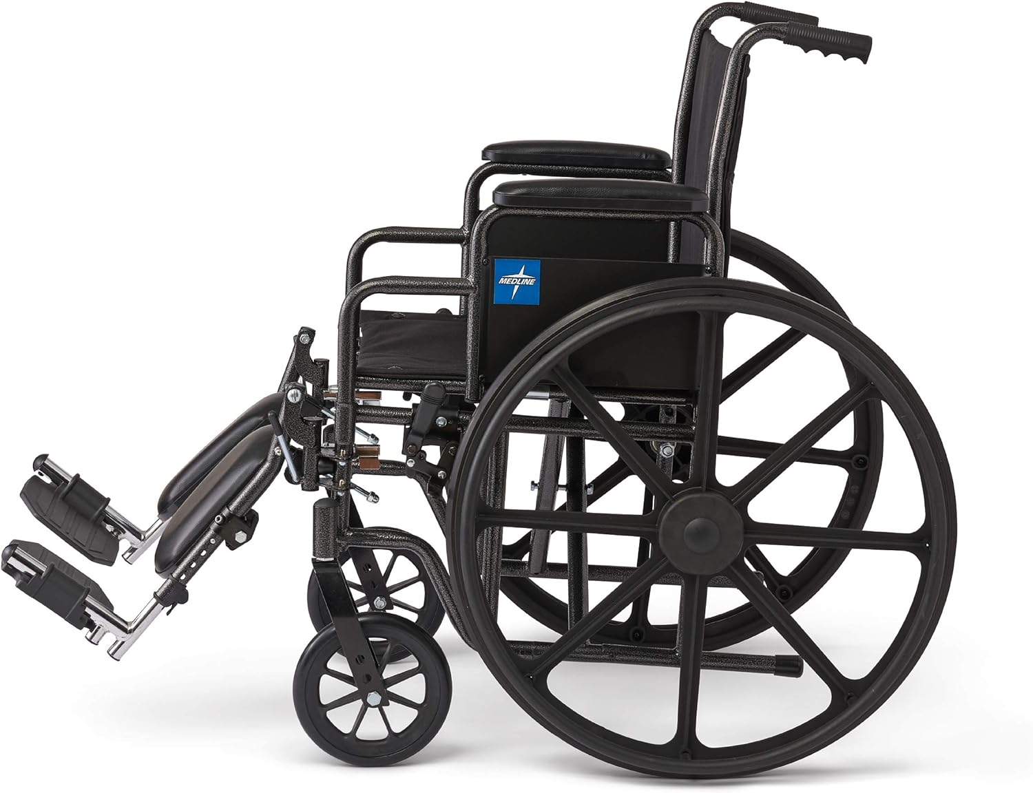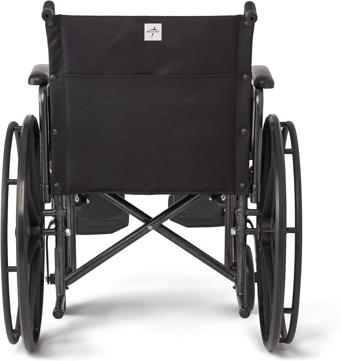Medline Durable Steel Wheelchair with Flip-Back Desk-Length Arms, Elevated Leg Rests, 20-Inch Wide Seat, 300-Ib weight capacity, Black