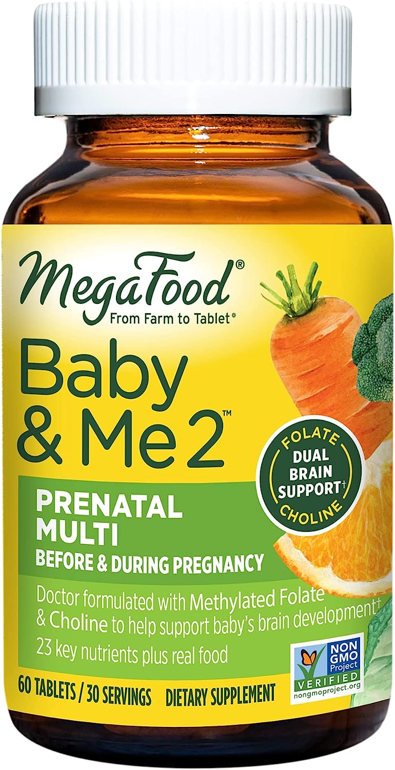 MegaFood Baby & Me 2 Prenatal Vitamin and Minerals - Vitamins for Women - with Folate (Folic Acid Natural Form), Choline, Iron, Iodine, and Vitamin C, Vitamin D and more - 60 Tabs (30 Servings)