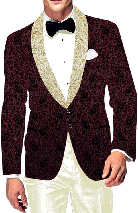 Mens Slim fit Casual Magenta Velvet Blazer Sport Jacket Coat Paisley Design VB18350XL46 46 X-Long Magenta