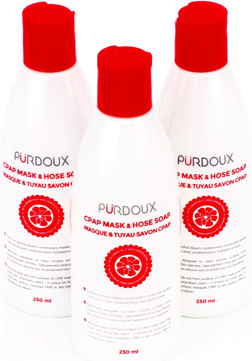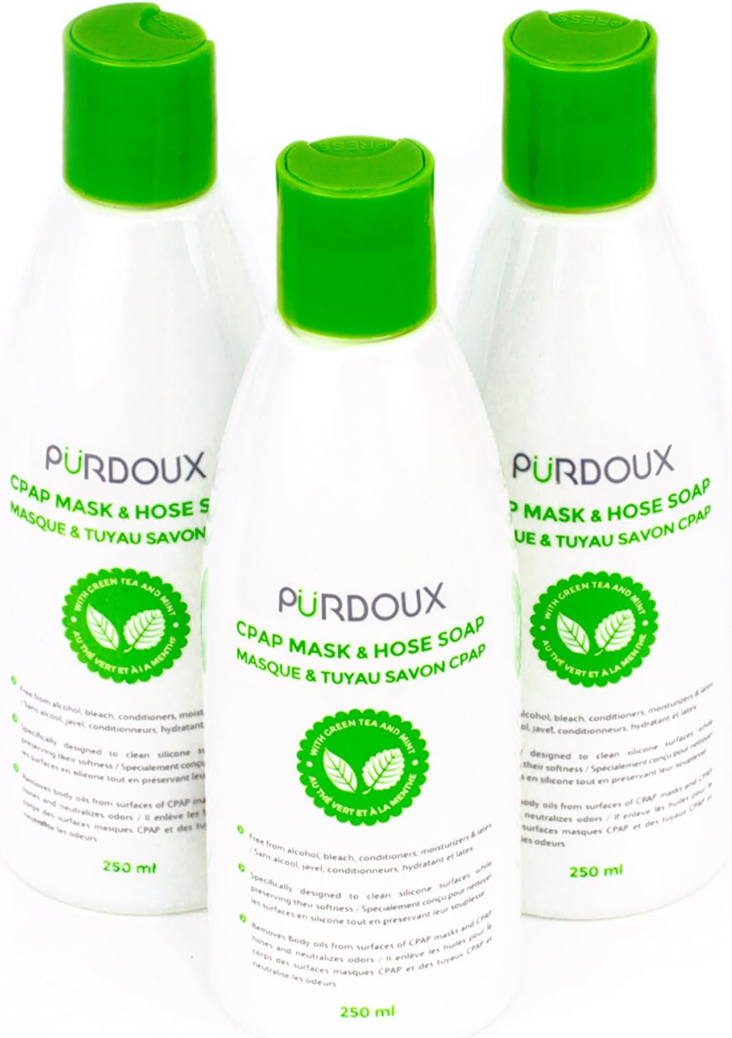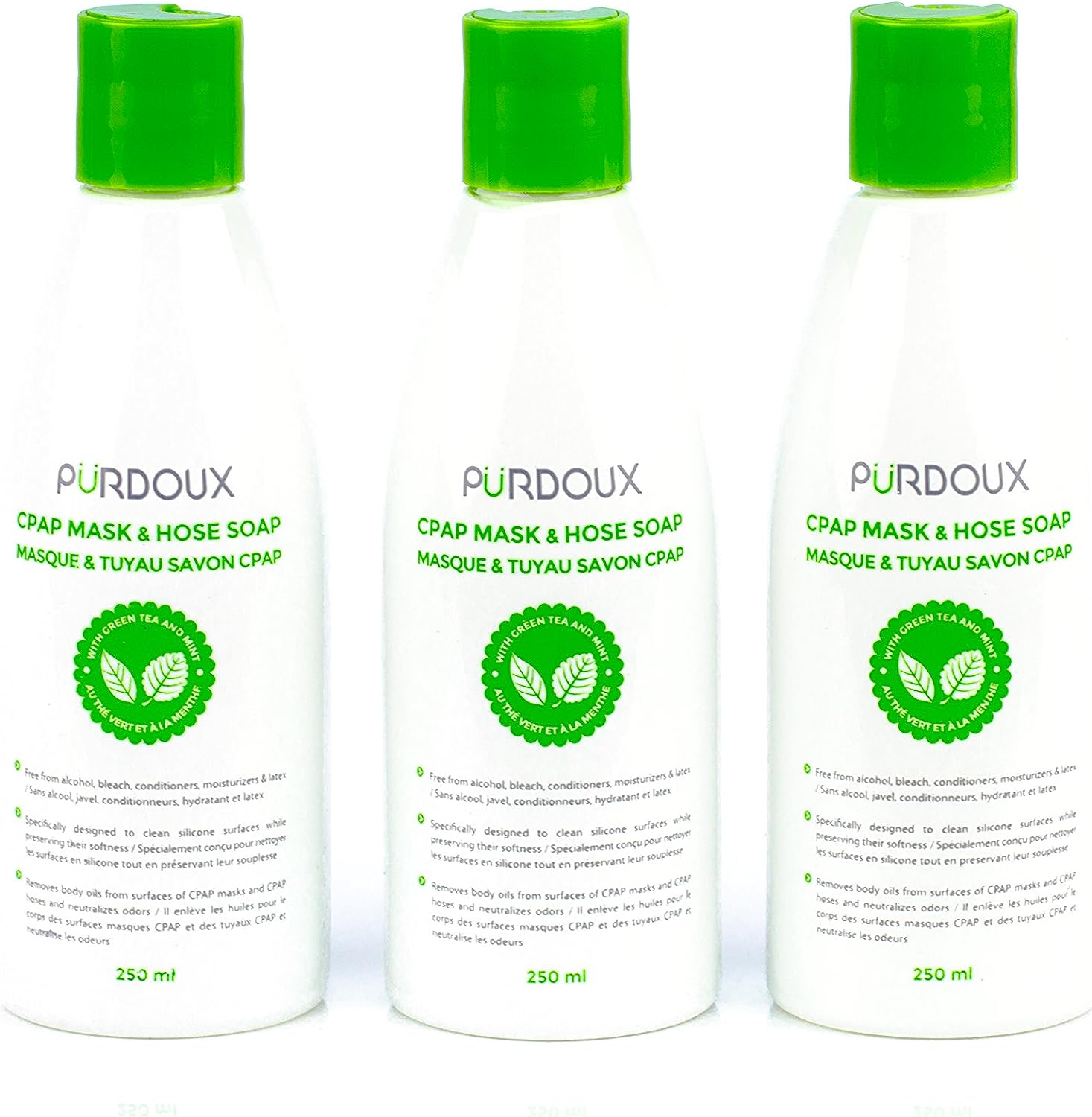 Purdoux CPAP Cleaning Soap for Hose and Mask (3 Bottle 250mL/8.04 oz pack) (Green Tea and Mint Scent)