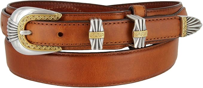Silver and Gold Buckle Set Oil-Tanned Genuine Leather Western Ranger Belt for Women