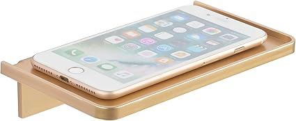 Stick-on Wall Shelf - Small Wall Mounted Adhesive Clear Acrylic Shelf Phone Holder Shelves Wipes Rack for Bathroom, Kitchen, Toilet, Office - Gold