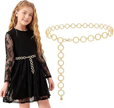 SUOSDEY Kids Metal Waist Chain Belt, Shiny Adjustable Chain Waist Belt for Girls Dress, Skirts, Jumpsuit, 31.5 Inches Long