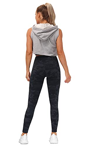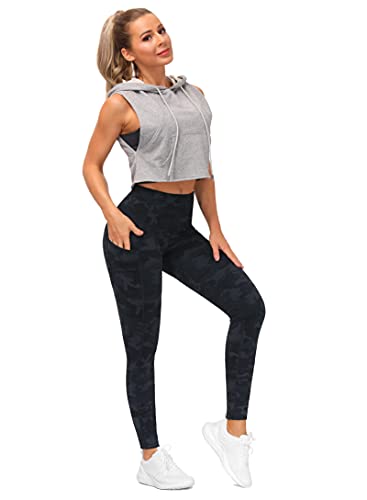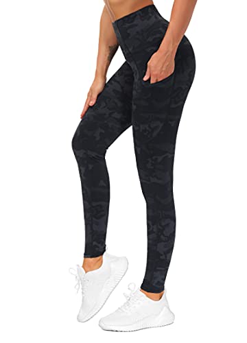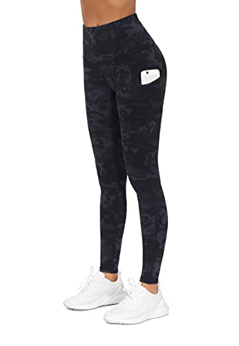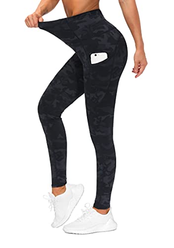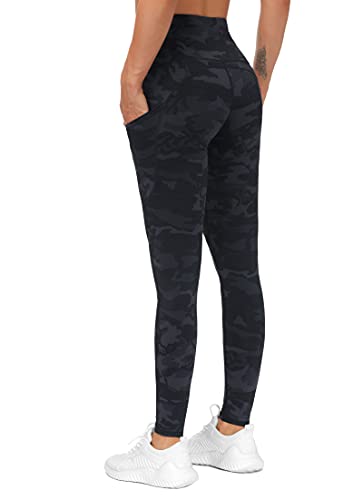 THE GYM PEOPLE Thick High Waist Yoga Pants with Pockets, Tummy Control Workout Running Yoga Leggings for Women (Medium, Black-Grey Camo)